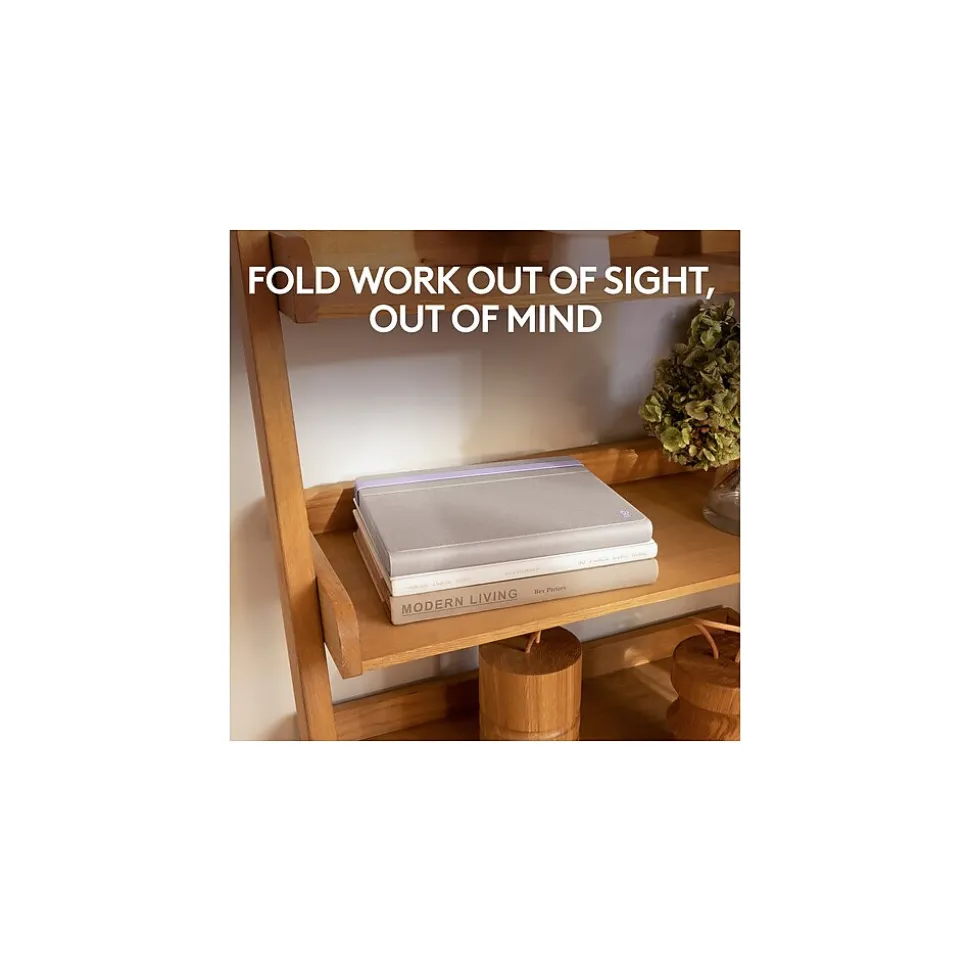 With Casa Pop-Up Desk, get comfy, focused work done anywhere in the home. Once you’re done? Fold it out of sight, out of mind. Casa has all you need to work from home in one compact kit, with a wireless keyboard, wireless touchpad and a book-like case that transforms into a laptop stand. With Casa Pop-Up Desk, you decide where comfy, focused work happens in the home. And when the workday is done? Fold it out of sight, out of mind. In one compact kit, there’s a laptop stand, wireless keyboard, touchpad, and storage space. All packed into a beautiful fabric case, available in three colors tuned to the home.