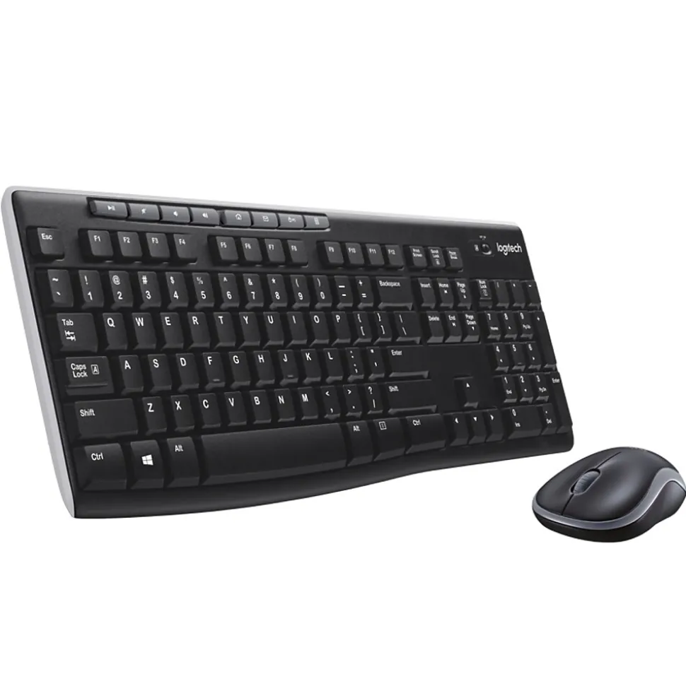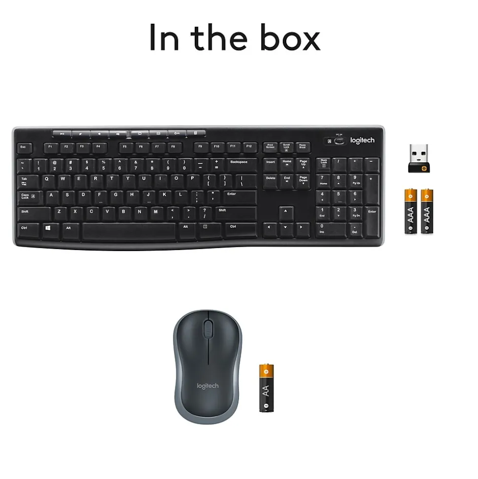 Type, scroll and click untethered with this Logitech wireless keyboard and compact mouse combo. A nano receiver connects both devices to your computer, eliminating the need for wires and cords, while the 10-meter range means you can control your computer from across the room. The full-size keyboard boasts a numeric keypad for fast data entry along with eight shortcut keys for faster typing. With its compact size, the mouse fits neatly in a travel bag or briefcase for use with a laptop. On/off switches on both devices help conserve battery power, making the long battery life even longer. With simple, low-profile designs, this Logitech wireless keyboard and compact mouse combo makes a handsome addition to your workstation.