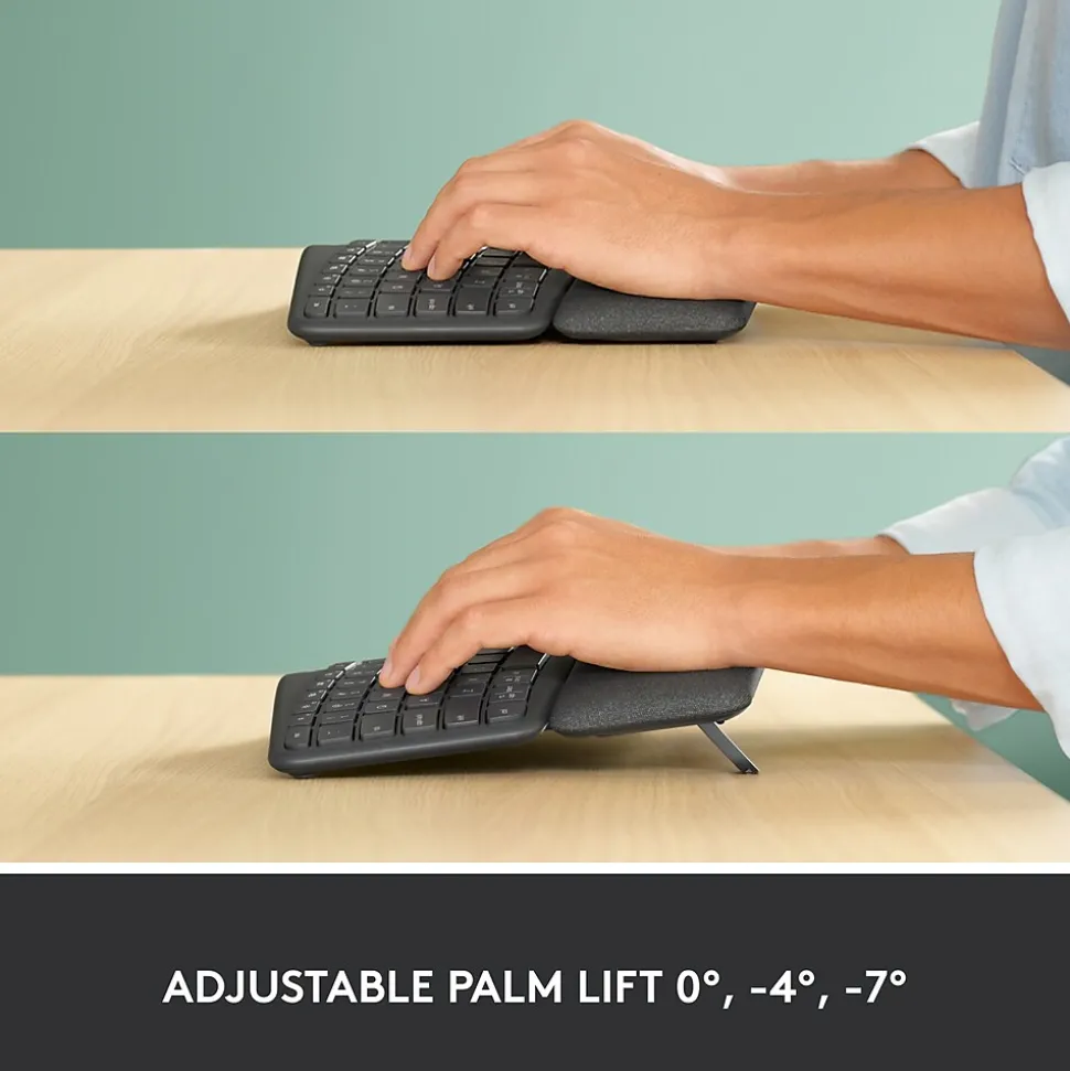 - Adjustable Palm Lift: Whether seated or standing, keep your wrists in total comfort and a natural typing posture with ergonomically-designed tilt legs of 0, -4 and -7 degrees
