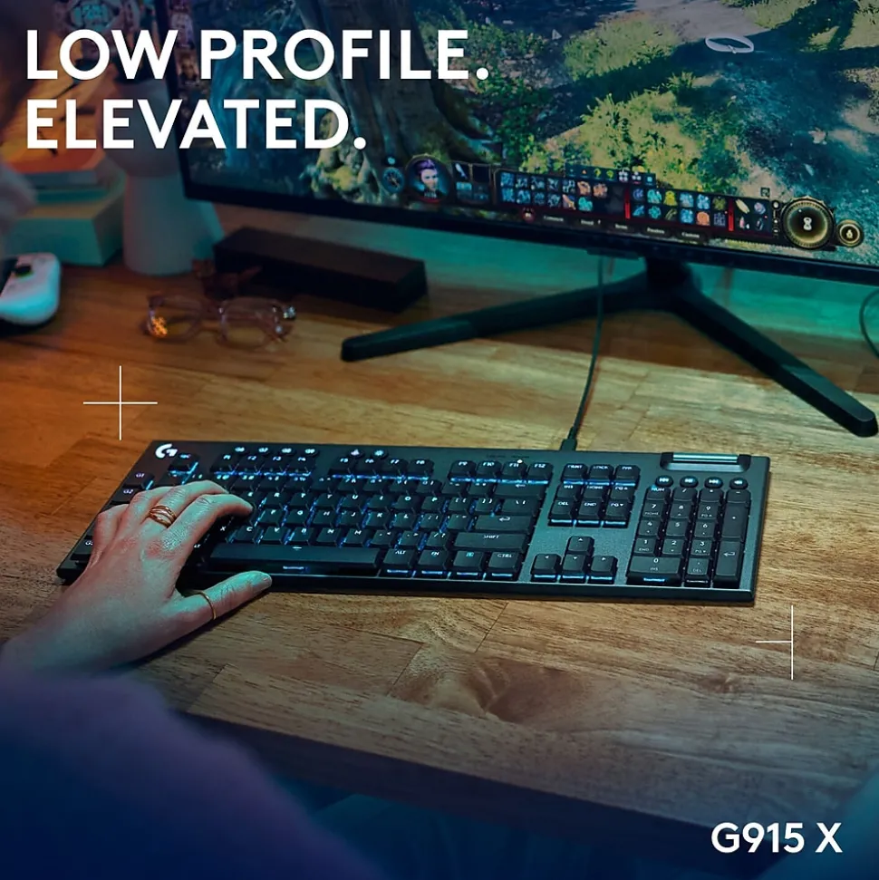 The Logitech G915 X Wired RGB Mechanical Gaming Keyboard (920-012937) is designed for gamers seeking precision and style. Featuring GL tactile mechanical switches, it offers a responsive and satisfying keystroke with an actuation point of 1.3 mm and total travel distance of 3.2 mm. This slim keyboard boasts 104 keys, including 12 function keys (F1–F12), for enhanced control and accessibility during gameplay. Built with a durable low carbon aluminum frame and RGB lighting powered by LIGHTSYNC, it allows for customizable color themes with up to 16.8 million colors. The wired connection, via the included 5.9 ft USB-A to USB-C cable, ensures reliable performance without the need for batteries. Compatible with Windows 10 or later and macOS 12 or later, it also offers optional customization through the Logitech G HUB software. Backed by a 2-year limited hardware warranty, the G915 X is a durable, eco-friendly choice with 30% post-consumer recycled plastic and FSC certification.