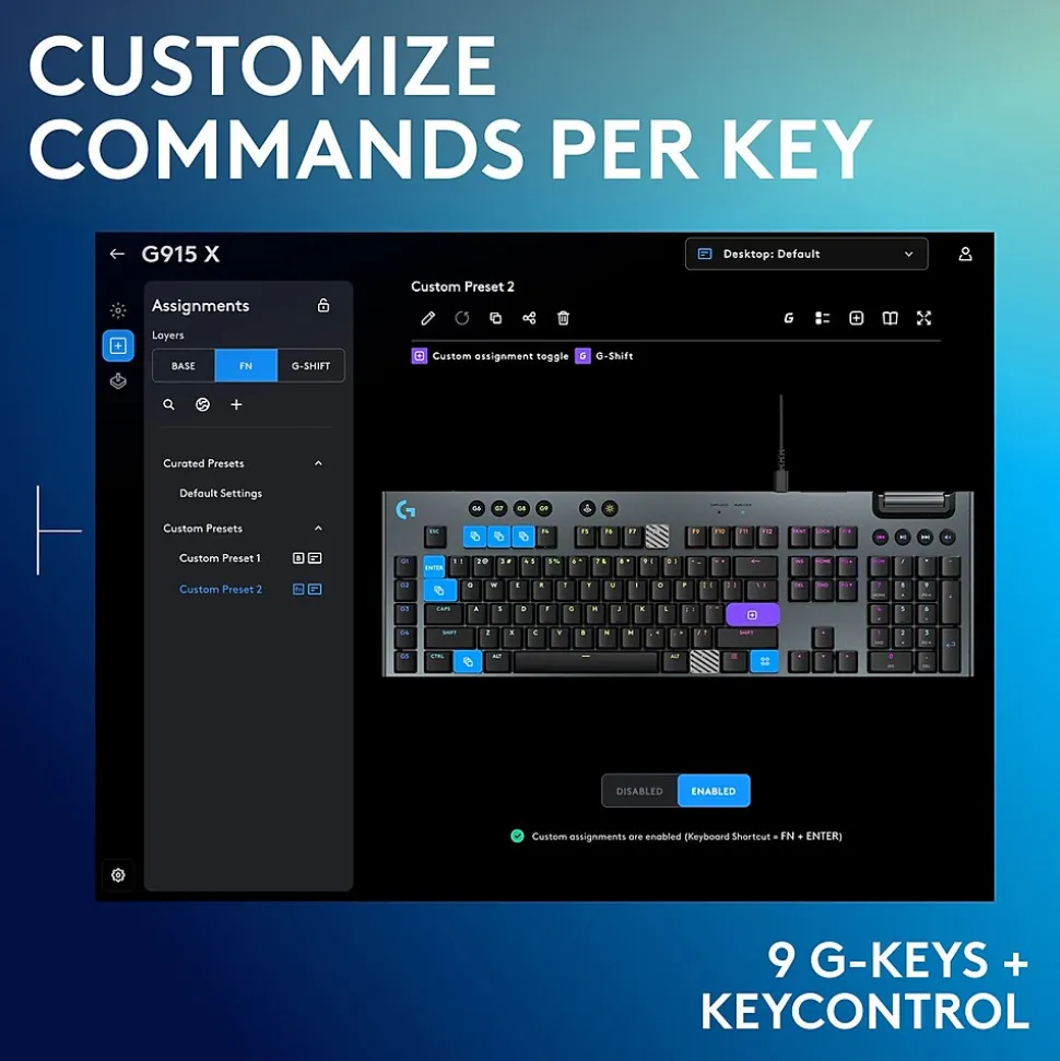 - This gaming keyboard is equipped with customizable RGB lighting, allowing users to personalize their gaming setup with approximately 16.8 million colors. Users can create dynamic lighting effects and sync the keyboard with other Logitech G products for a cohesive gaming experience.