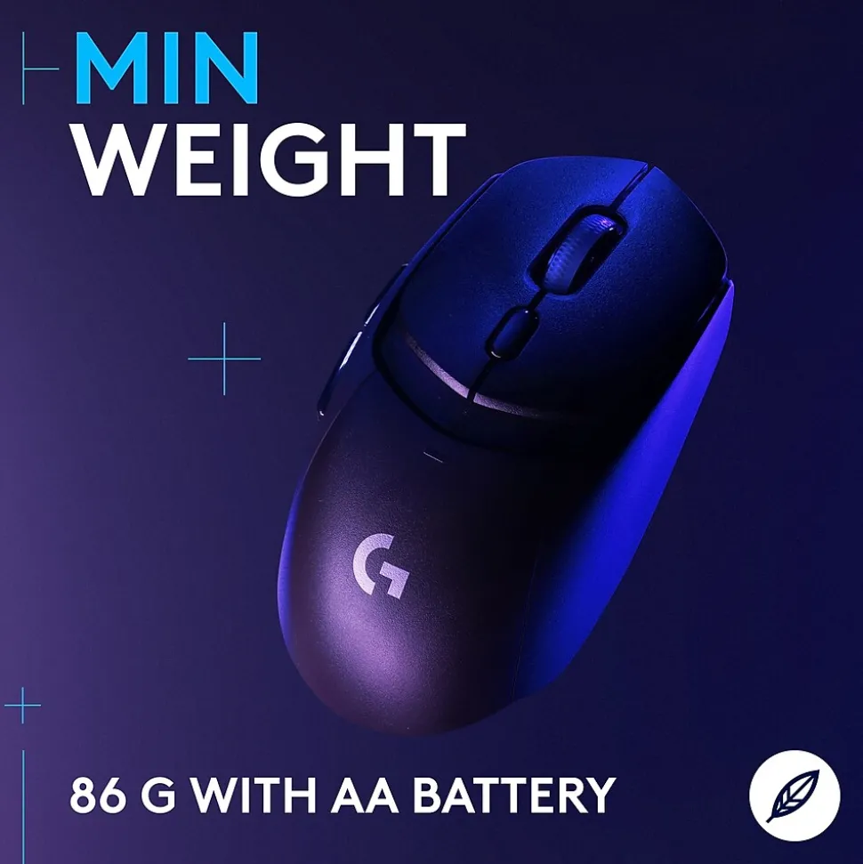 - Min Weight: Logitech G309 LIGHTSPEED is a lightweight gaming mouse that weighs just 86 g with the included AA battery or 68 g (battery-free) with use of POWERPLAY wireless charging system