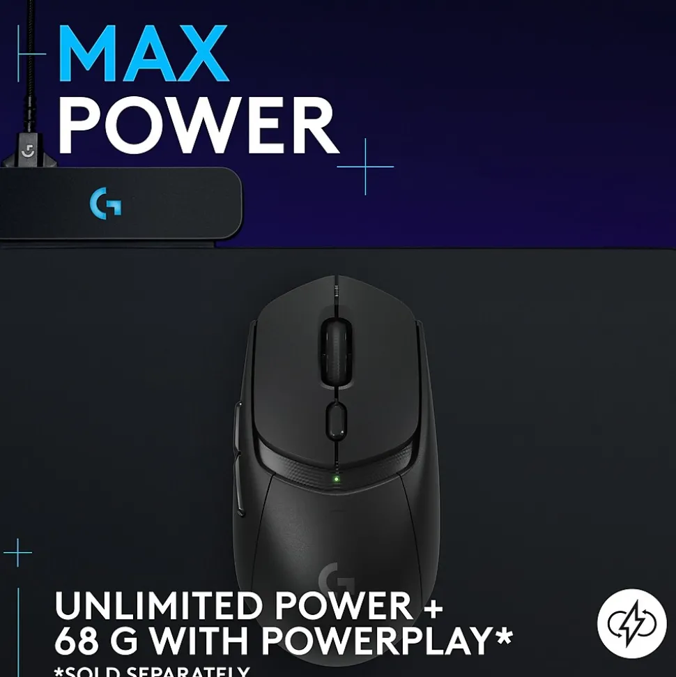 The Logitech G309 LIGHTSPEED Wireless Gaming Mouse was designed to optimize performance in your game. This PC gaming mouse delivers advanced wireless tech and innovation for all gamers to play at their max potential. Enjoy up to 300+ hours of play with the included AA battery or unlimited battery life with POWERPLAY. The Logitech G309 LIGHTSPEED is a lightweight gaming mouse that weighs just 86g with the AA battery or 68g with POWERPLAY. Min limits. Max precision. Max speed. Max performance.