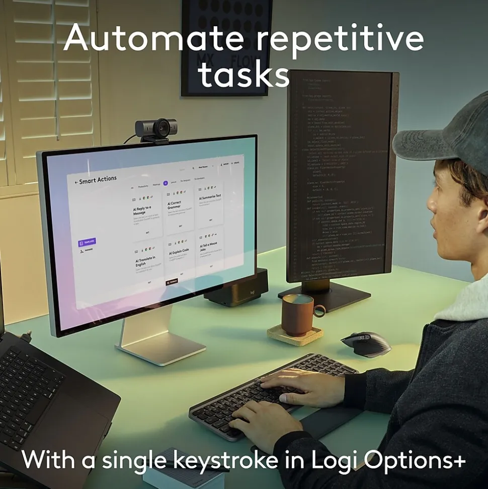 - Automate Repetitive Tasks with Logitech Keyboard: Easily create and share time-saving Smart Actions shortcuts to perform multiple actions with a single keystroke with the Logi Options+ app (1)