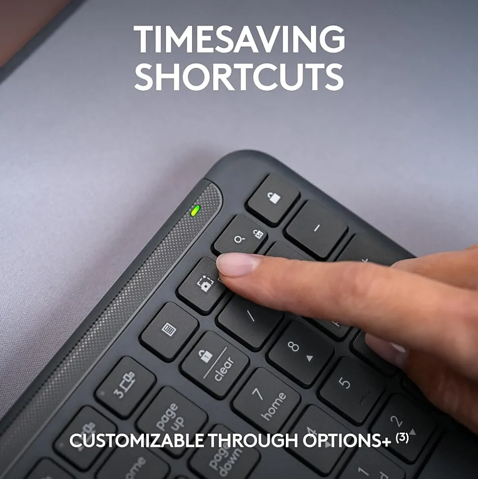 - Timesaving shortcuts: Personalize keys and buttons with shortcuts such as activating Copilot in Windows (in preview) (10) with Logi Options+ app (3)
