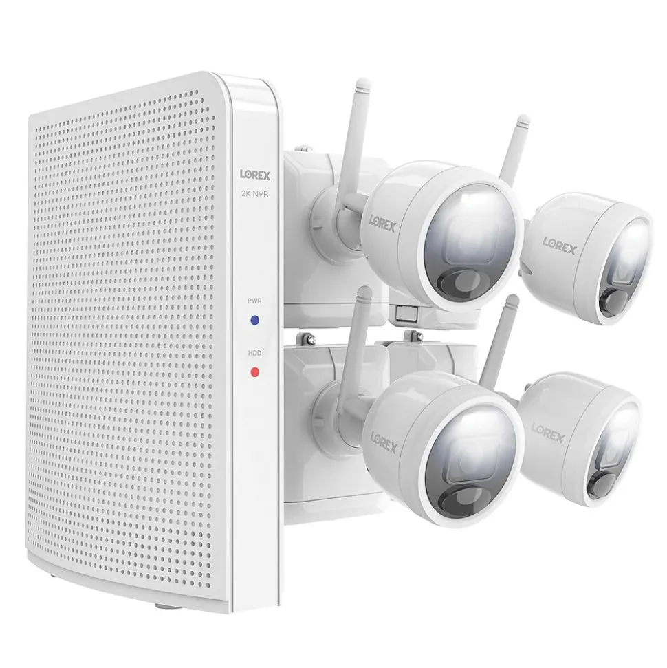 This Lorex wire-free security system is a promise of flexibility and DIY simplicity. With its battery-operated wireless connection and weatherproof rating, you can install the Lorex 2K wire-free security camera inside or outside, without unsightly cables ruining the aesthetics of your home! Security features of the cameras include Person Detection and Active Deterrence. The Lorex 2K NVR offers you ample video storage for your wire-free cameras. And if you choose to add more U424AA cameras, the NVR can handle up to 8 of them! This 2K wire-free bundle ensures easy installation and efficient monitoring day and night.