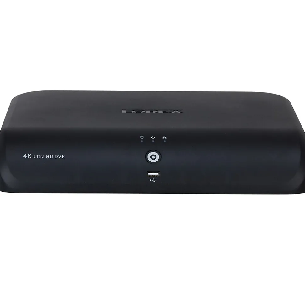 - Panic button on front of recorder activates all lights and sirens on compatible Lorex Active Deterrence cameras