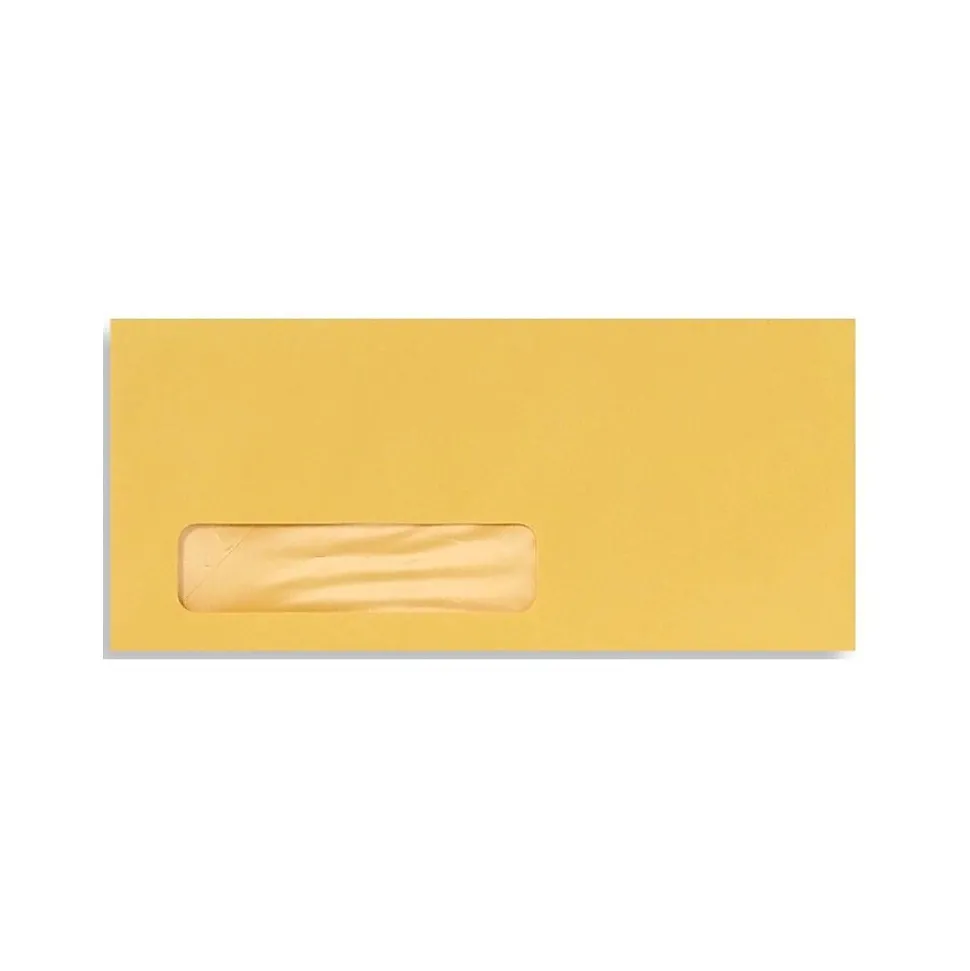 LUX® Size 10 window envelope in goldenrod color is ideal for sending letters with addresses imprinted on it. 4 1/8″ x 9 1/2″ Envelope compatible with laser and inkjet printers has 60 lbs paper weight and is sold as 500 per box.