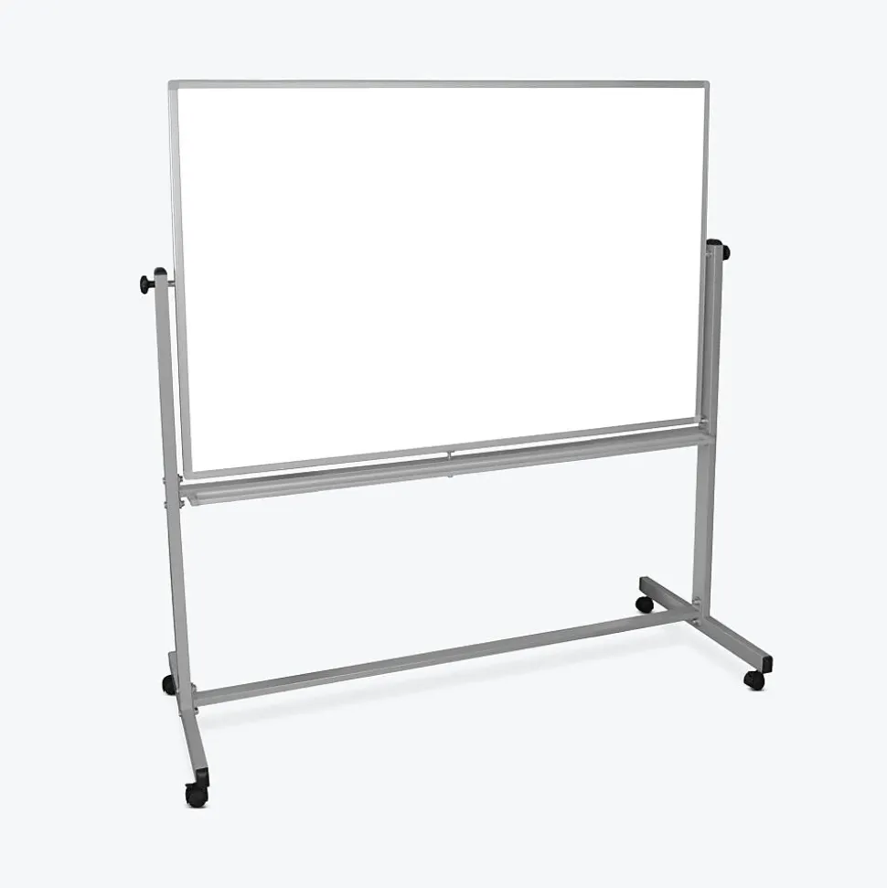 Built for brainstorming, teaching or organizing ideas and information, a Luxor magnetic dry erase board doubles the writing space and delivers the durable mobility needed for dynamic workspaces. A slender-yet-sturdy steel frame provides a professional appearance and rolling casters make it easy move around a room. To flip the board, simply loosen the side knobs and disengage the spring-loaded locking clip. Need to display charts, papers or photos? Use the magnetic surface as a bulletin board. Look no further for a high-quality, affordable mobile marker board.