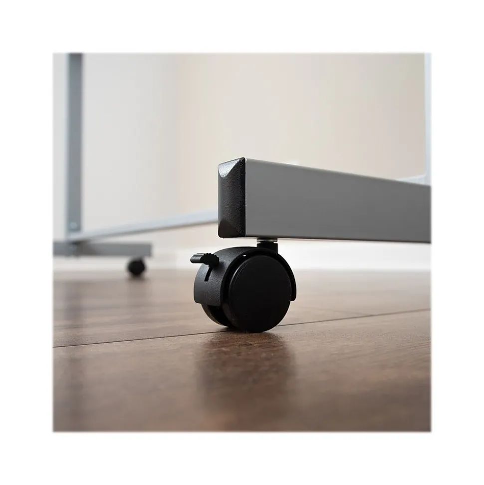 Luxor’s 48″ x 36″ mobile magnetic combination ghost grid/whiteboard features a 2″ x 2″ ghost grid pattern on one side and a plain white surface on the other. This offers an effective tool to facilitate communication in businesses, schools, and manufacturing environments. Two rolls of whiteboard tape are included to create the straight lines required for professional-looking graphs and columns without drawing attention to the grid lines. Perfect for sharing ideas, collaborating, or tracking lean initiatives, this dry-erase board’s painted steel surface provides a smooth writing finish that resists stains and ghosting, while the magnetic quality allows printed documents and notes to be easily displayed. The reversible feature doubles the writing space; simply loosen the side knobs to disengage the spring-loaded locking clip, and flip the board from one side to the next. Four rolling casters provide easy mobility: engage the two locking brakes to maintain a fixed position.