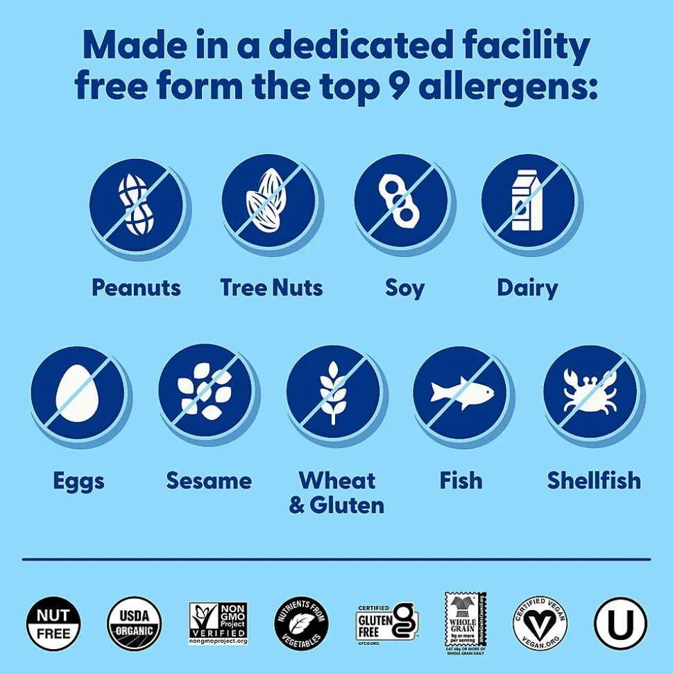 - Free of GMOs, gluten, nuts