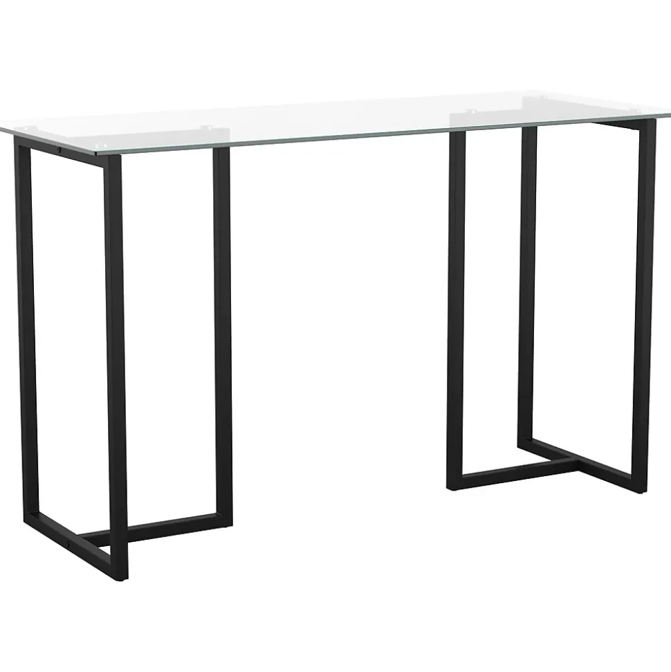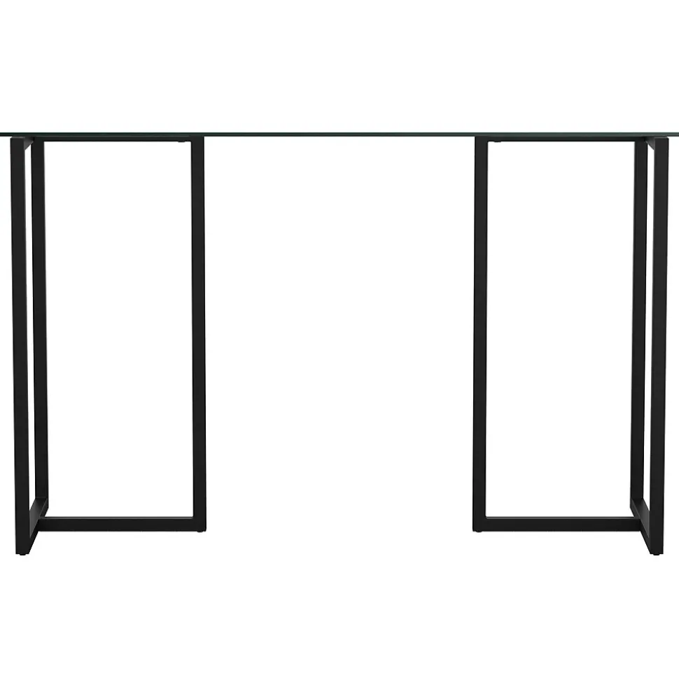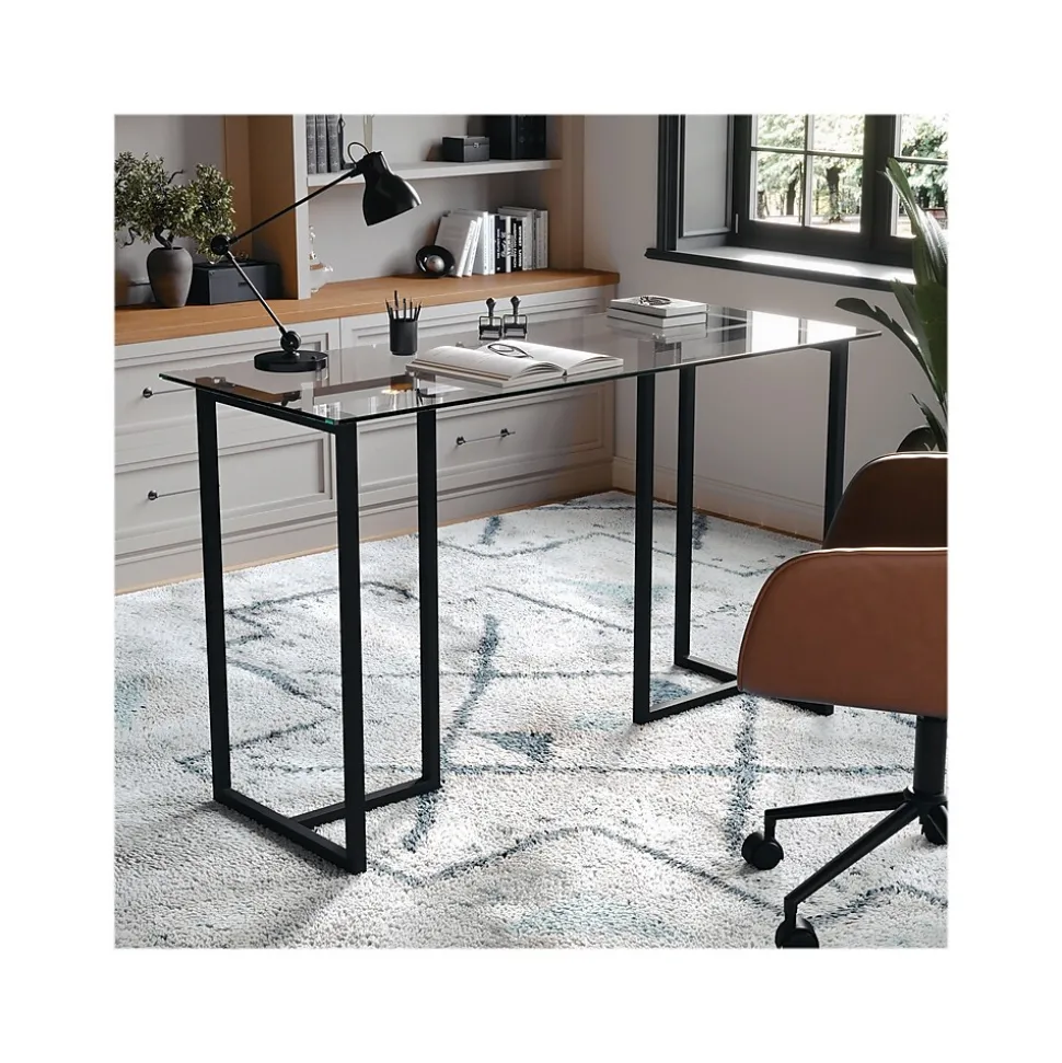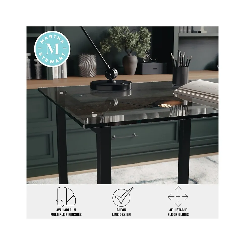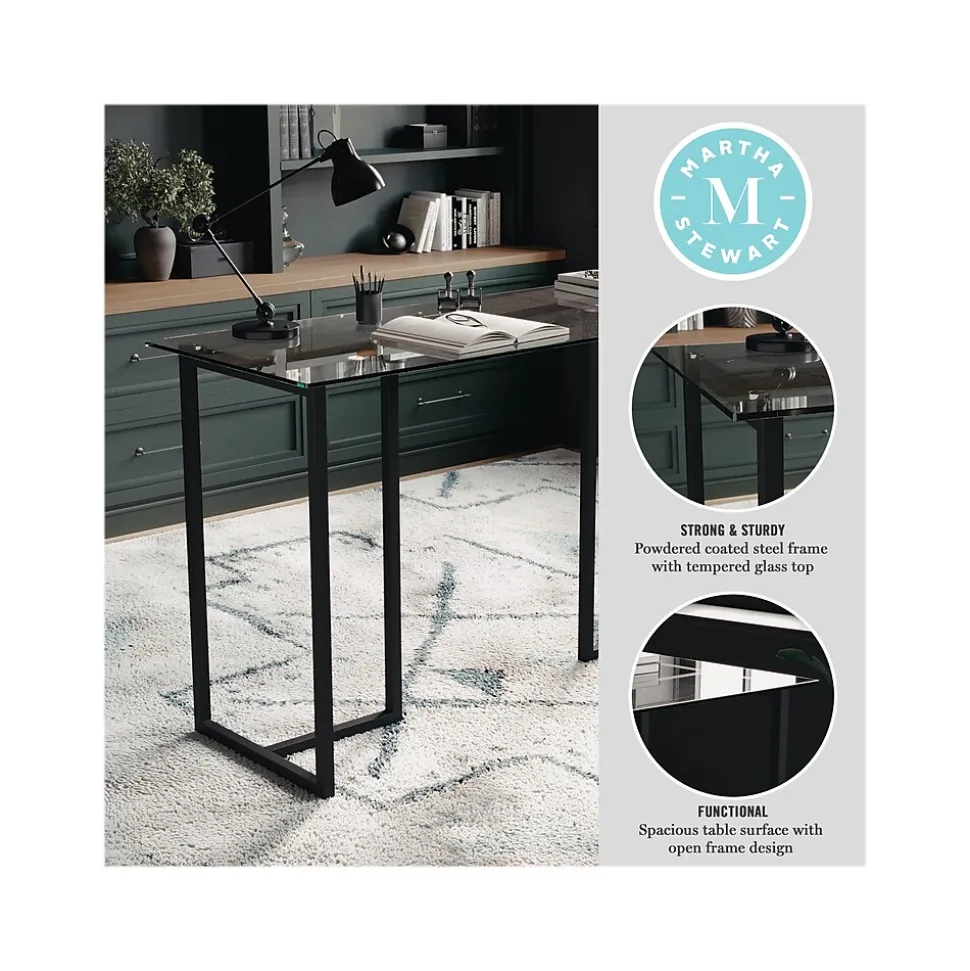 When creating your home office space, start with the focal point, your desk, which should be everything that you need to make your workday go smoother. This modern Martha Stewart Eli home office desk in a spacious open-frame design has an easy-to-clean tempered glass desktop with a powder-coated steel frame base in an oil-rubbed bronze finish.