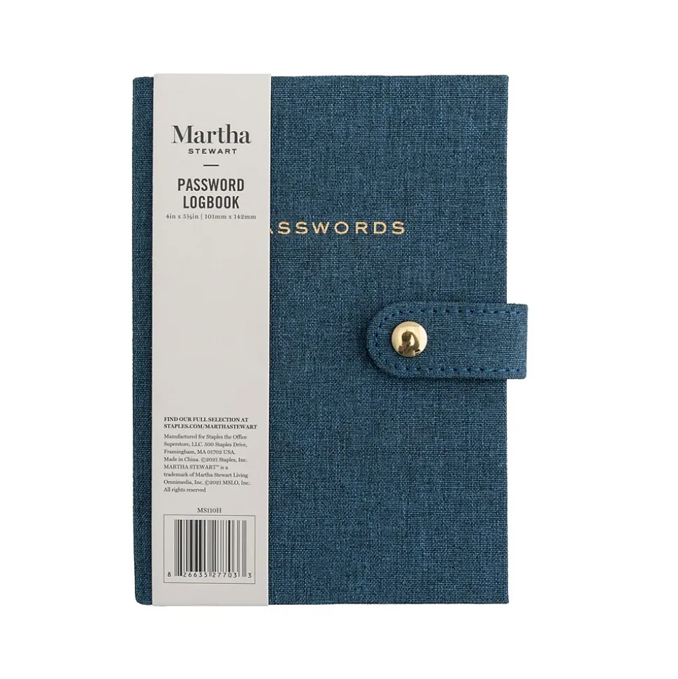 Martha Stewart Password Book, 4″ x 5.5″, Ruled, 72 Sheets, Navy (MS110H)