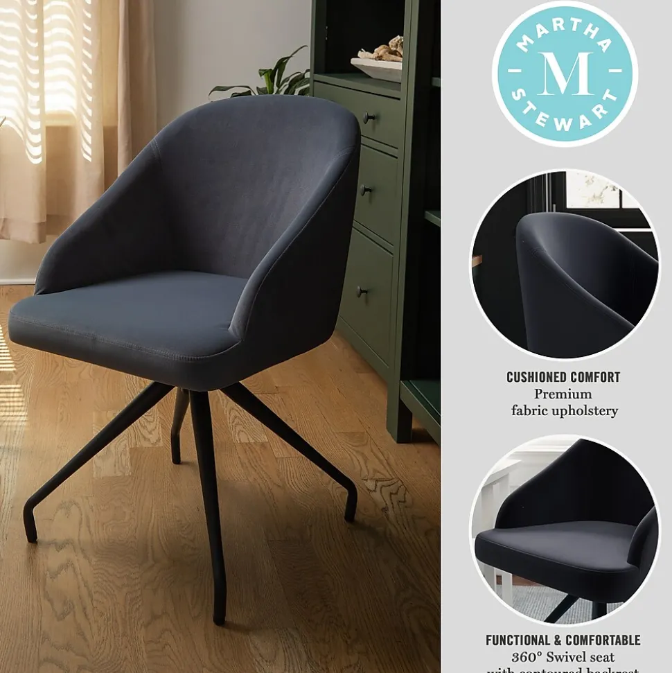 The Martha Stewart Sora Office Chair is a more sophisticated working version of the traditional accent chair. Stationary legs paired with a 360° swivel seat lend understated elegance to your work space. This velvet upholstered desk chair features a timeless oil rubbed bronze frame and a gently contoured backrest to keep you comfortable throughout your workday. Assembly is easy with the included tools and step-by-step instructions.