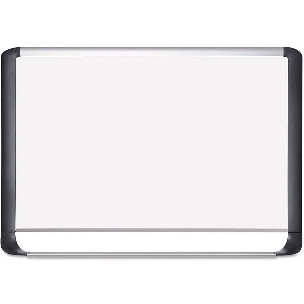 Magnetic Gold Ultra™ dry erase board allows you to post notes and messages as well as write. The lacquered steel surface is suitable for frequent use. Sleek, contemporary frame design combines aluminum and black plastic to provide a stunning yet sturdy effect that brings dry-erase into the 21st century. Full-length aluminum tray keeps what you need near to hand.