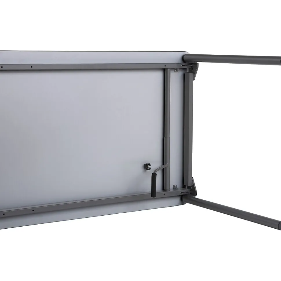 This simple folding table from Maxx Legroom features an open corner leg design that offers generous leg room. The single-cam handle and quick release leg lever make setup quick and easy, while the sturdy construction ensures durability. The table folds flat to a compact size, making it easy to store. The metal legs enhance stability and ensure years of use. This table is ideal for displaying trade brochures or products at conventions, or keep it on hand for extra seating whenever you need it. This pro duct comes with a manufacturer’s limited 5-year warranty for peace of mind.