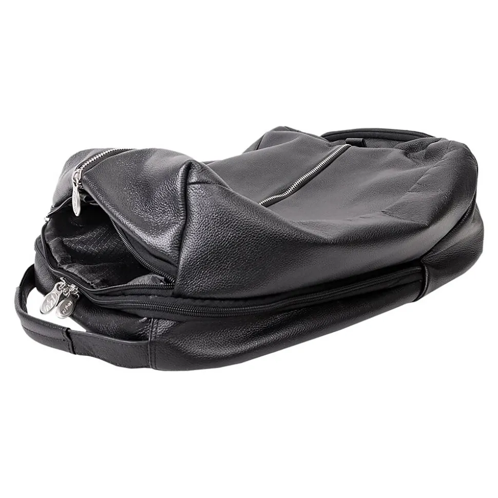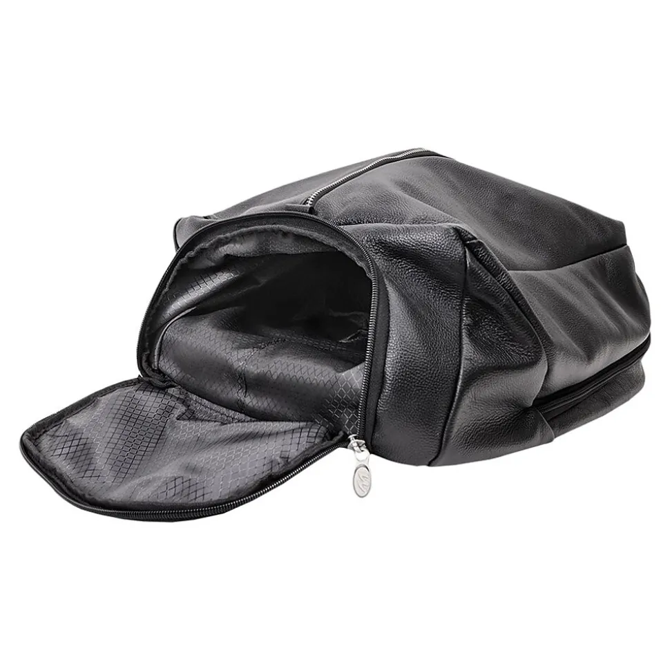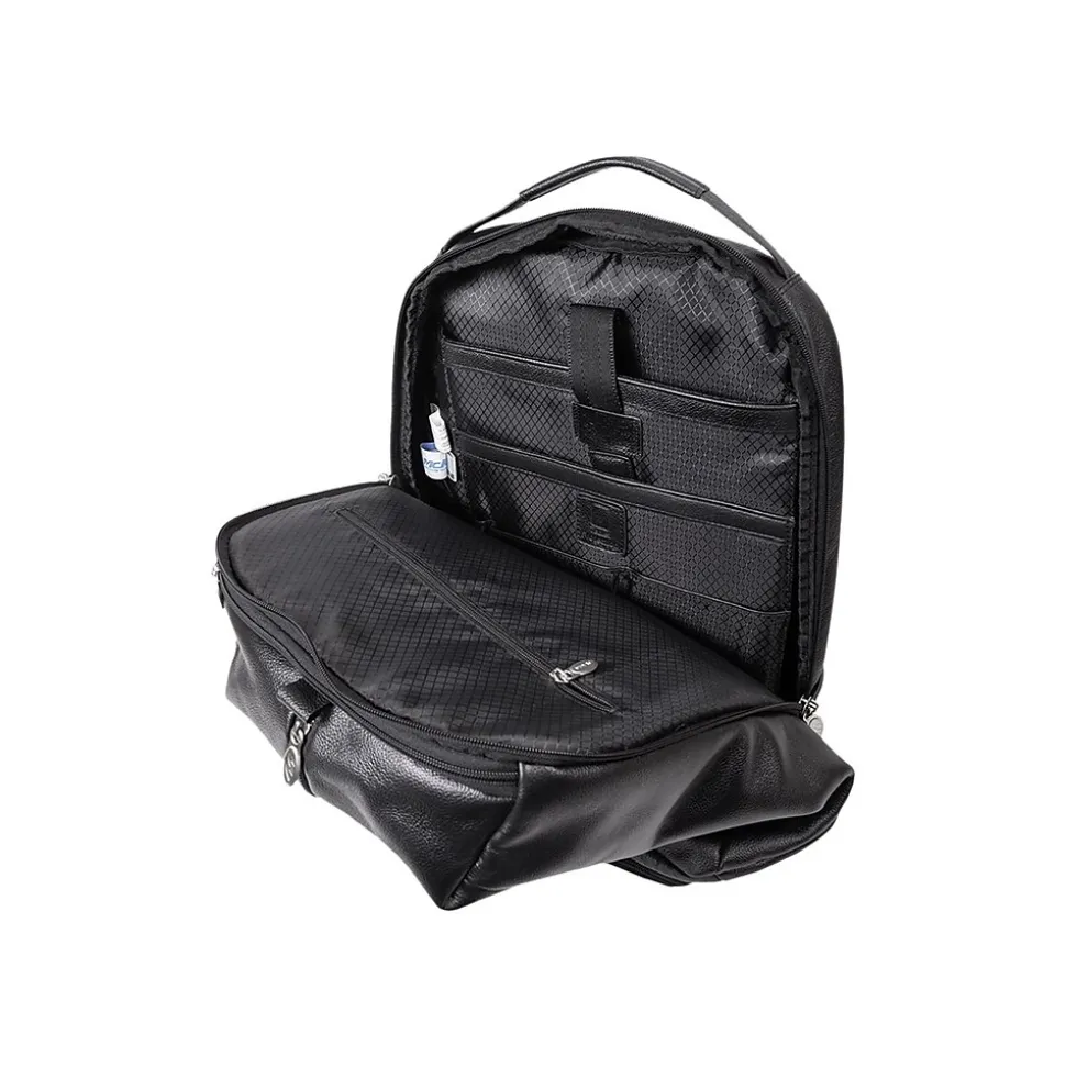 For the active professional who needs a way to balance business and recreation this spacious McKlein U Series South Shore nylon 17″ laptop overnight carry-on is designed to transport everything you need. The top carry handle and pull tab open access to your stored items with ease. The main front vertical full-length zipper compartment is perfect for storing clothes. The small top zipper pocket keeps your keys and other accessories easily accessible. The fully lined interior with leather trim and silver hardware is kept safe with a secure lockable zipper. The back-interior compartment accomodates a built-in 17″ laptop and tablet pocket with a business accessory organizer. Additional zipper pocket helps keep important belongings safe. Keep it comfortable on your back with the leather-padded air mesh exterior straps, or attach it to your luggage with the piggyback attachment.