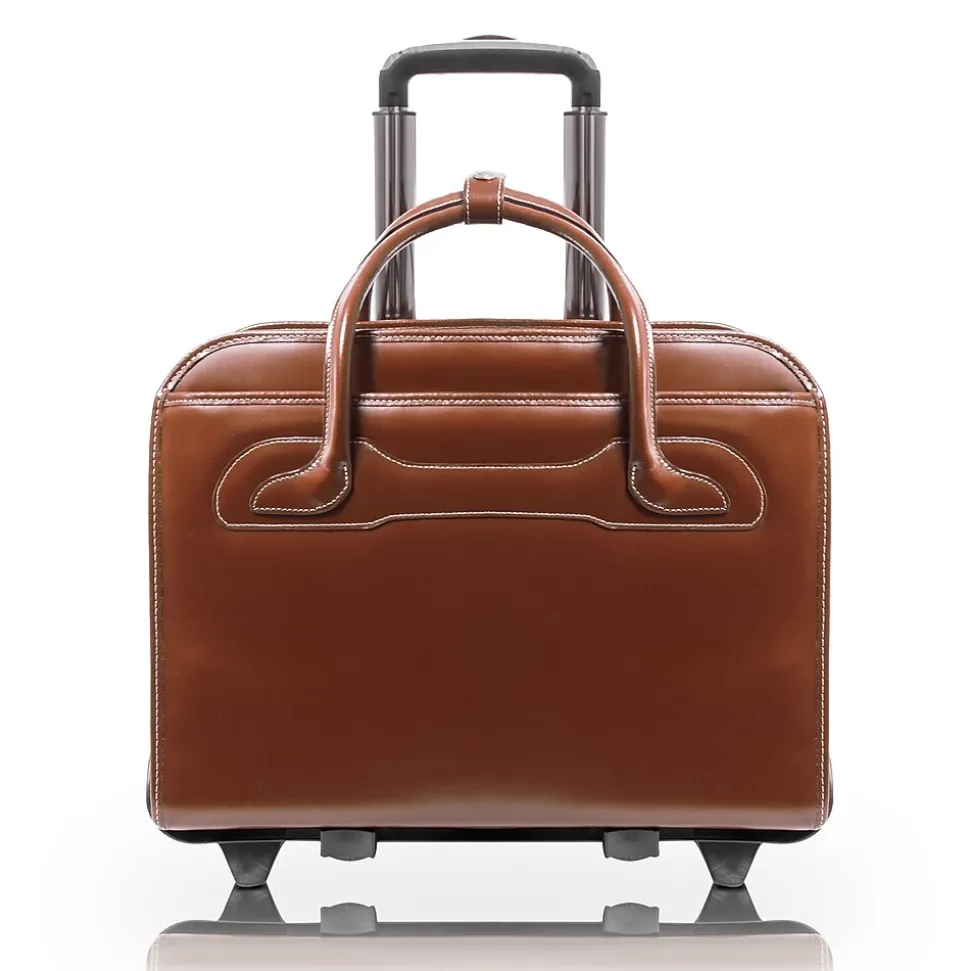 Patented 2-in-1 Detachable Wheel and Handle System briefcase. Interior organizer with storage space for media devices, business cards, key holder and pens. Double compartment divided by secured zipper pocket for important documents. Built-in padded laptop compartment that protects most laptops up to 17″ in size. Dual Laptop Protection System uses a high-tech ABS frame to protect laptop from exterior impact and a sleeve with high-density foam to help absorb shock and prevent moisture intake. Smart Strap Attachment System allows easy attachment on extended handles of other rolling cases. Weather proof cover included.
