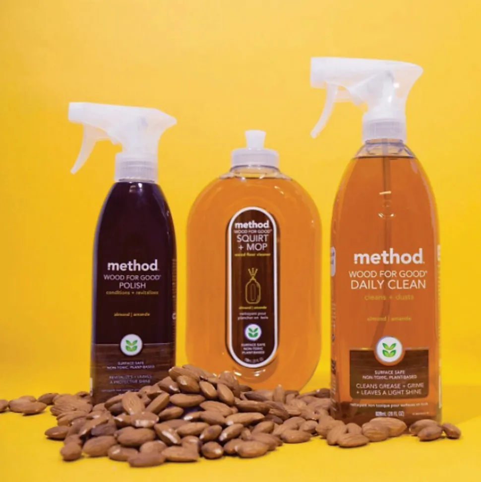 Shine the wood furniture and accents in your home or office with this plant-based wood cleaner. A convenient spray bottle makes this non-toxic cleanser easy to use every day. This Method plant-based Wood for Good daily cleaning spray has a fresh almond scent that makes cleaning pleasant.