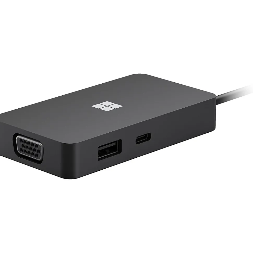 Expand the capabilities of your USB Type-C compatible laptop or Surface device by using the USB Type-C Travel Hub with Power Passthrough from Microsoft to add ports. Designed for portability, this compact hub can be packed into a bag or purse to be taken almost anywhere. It connects quickly to your computer’s USB Type-C port to add a USB 3.1 Gen 2 Type-A port capable of transferring data from external drives and other compatible devices at up to 10 Gb/s. An external monitor may be connected to the hub through the VGA port or the HDMI port, which supports 4K monitors at 60 Hz. Other features include a Gigabit Ethernet port for reliable, high-speed wired network connections and a USB Type-C port with power passthrough to keep your compatible devices charged by connecting the hub to a power source.