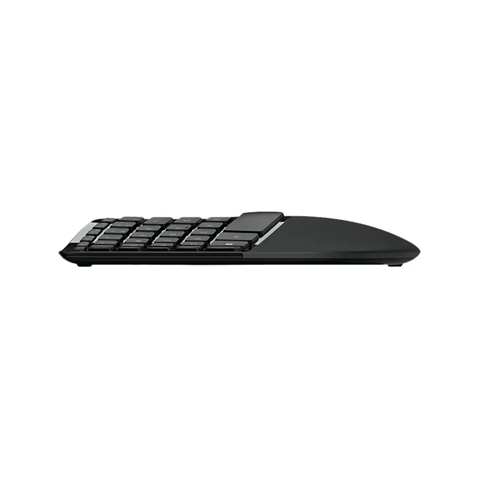 Rethink the way you approach typing and scrolling every day with this Microsoft Sculpt ergonomic desktop combo pack. The curved keyboard design puts your hands and wrists in a comfortable, natural position, and the separate numeric keypad allows for fast, easy data entry from anywhere on your desk. Featuring four-way scrolling, the uniquely angled mouse makes it easy to navigate through websites and complex software applications. This desktop set connects to your computer using a wireless USB receiver, making setup a simple task. Connect this Microsoft Sculpt ergonomic desktop combo pack to your Windows-based desktop or laptop for a more comfortable arrangement, and tuck it into a briefcase or suitcase when you’re ready to take your office on the road.