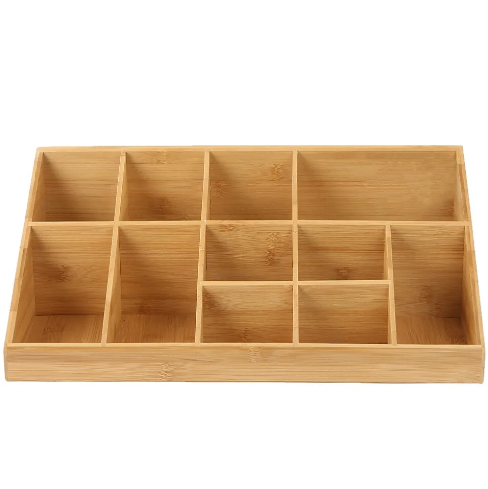 Elevate your coffee breaks with this expansive 2-tiered, 11-compartment cup and condiment organizer, revolutionizing how you access your choices. Bid farewell to rifled-through cups and unusable condiments. This station elegantly displays items, facilitating easy access and catering to diverse preferences. Versatile and ideal for hotel lobbies, breakrooms, hospitality suites, restaurants, and office receptions, it enhances various environments.Beyond cups and condiments, this adaptable organizer thrives on countertops or within cabinets, efficiently storing office supplies, art tools, and more. Varying compartment sizes simplify organizing pens, rubber bands, paintbrushes, and various items.Maintenance is simple – wipe with a damp cloth or rinse stubborn messes with warm water. Constructed from durable, eco-friendly rayon from bamboo, this organizer is ready to use immediately. Rubber grips beneath ensure stability on surfaces.Lightweight and durable, this compact organizer creates a comprehensive beverage station for office breakrooms, parties, and hospitality suites. It’s a considerate gift for those seeking enhanced coffee breaks and an organized beverage area.