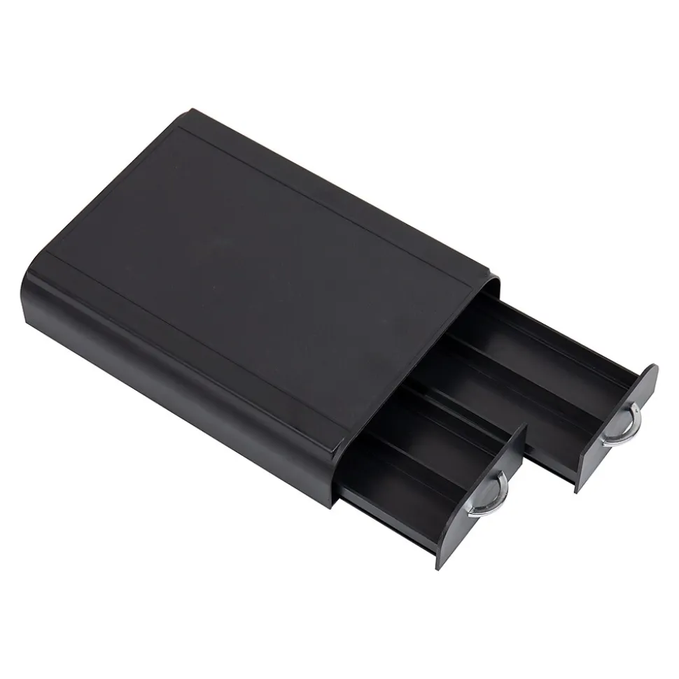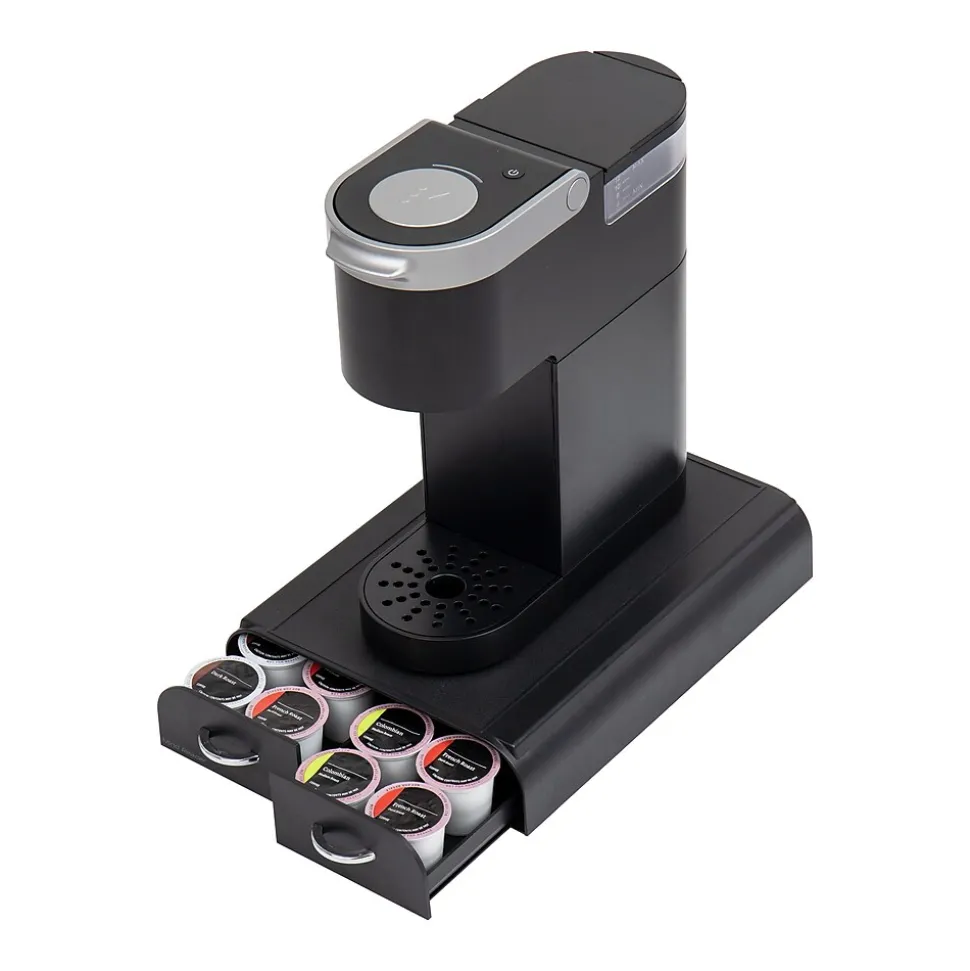 Make mornings more enjoyable with this single-serve coffee pod organizer. Designed to store 24 single-serve pods, this convenient drawer system allows you to arrange your favorite flavors in multiple ways to cater to various tastes and preferences. With two drawers each holding two rows of six single-serve pods, you’ll never have to rummage through a cluttered mess to find the perfect pod.This coffee pod organizer also doubles as a single-pod coffee brewer base, compatible with Keurig Mini Series, creating a complete coffee station at your fingertips. Rubber grips on the base ensure your coffee brewer and pods stay securely in place. The space-saving design keeps your kitchen looking neat and organized.Don’t worry about spills or messes—this coffee station organizer is easy to clean with just a damp cloth. Made from heavy-duty plastic, it’s built to withstand everyday use. The compact and lightweight design makes it perfect for taking on your travels or even to work, so you’ll never be without your favorite brew.This versatile single-serve coffee pod organizer makes an excellent gift for pod beverage enthusiasts, helping them simplify their morning routine and share the coffee love.