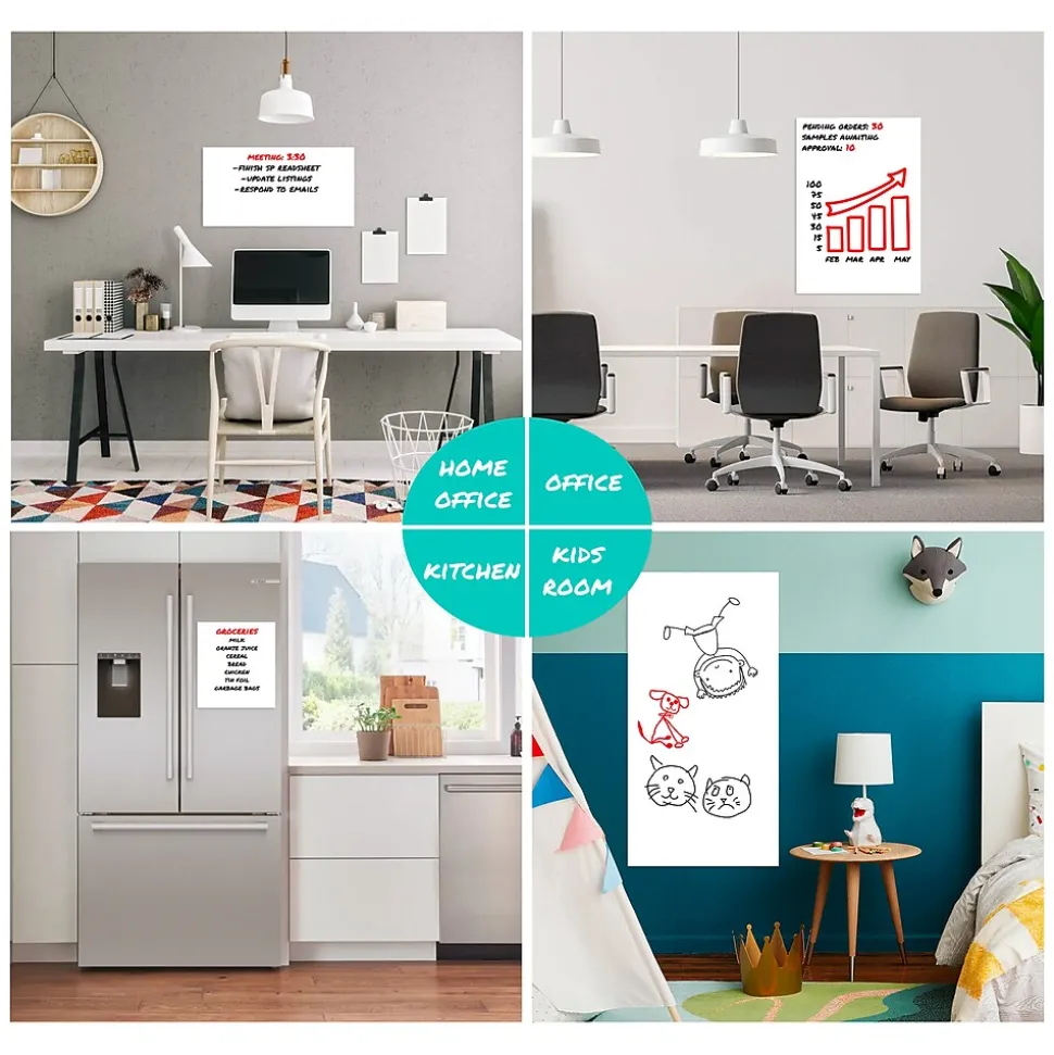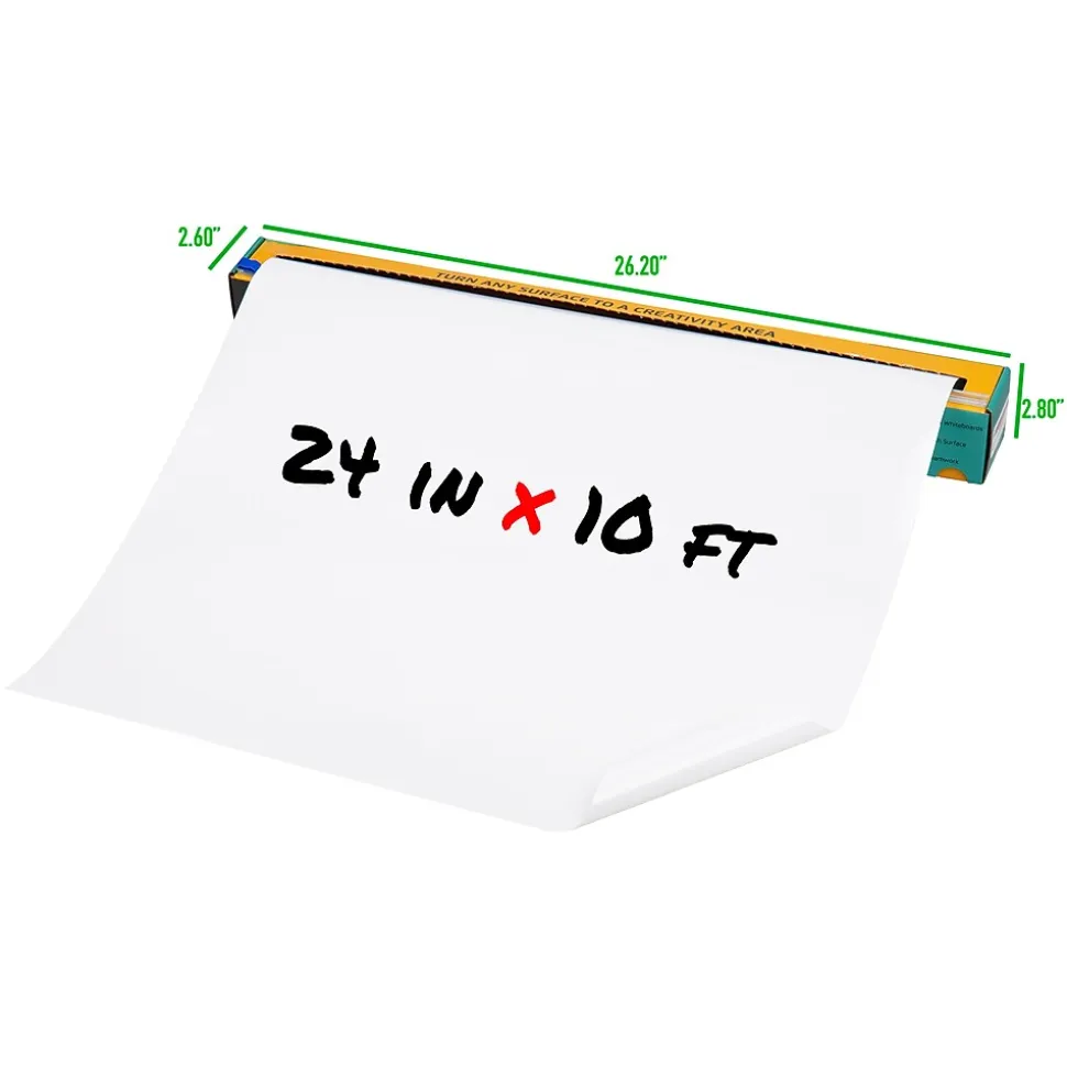 Boost productivity and organization with our adhesive and removable dry erase whiteboard roll. This versatile tool is perfect for offices, classrooms, and home management. Plan meals, make lists, set reminders, or maintain schedules with ease on this customizable surface.Ideal for study rooms and dorms, it supports focused study sessions and homework help. The package includes two markers in different colors for a clean writing experience, without residue. The built-in cutter lets you create a whiteboard of your desired size from the 24-inch by 10-foot roll.Applying and reusing the whiteboard is effortless and damage-free, making it adaptable to various settings. Use it for gatherings, game nights, or community events. A great gift for the organized, bosses, coworkers, teachers, and busy households, this whiteboard roll enhances planning and organization.Elevate productivity and organization with this customizable dry erase whiteboard roll, transforming your workspace and activities.