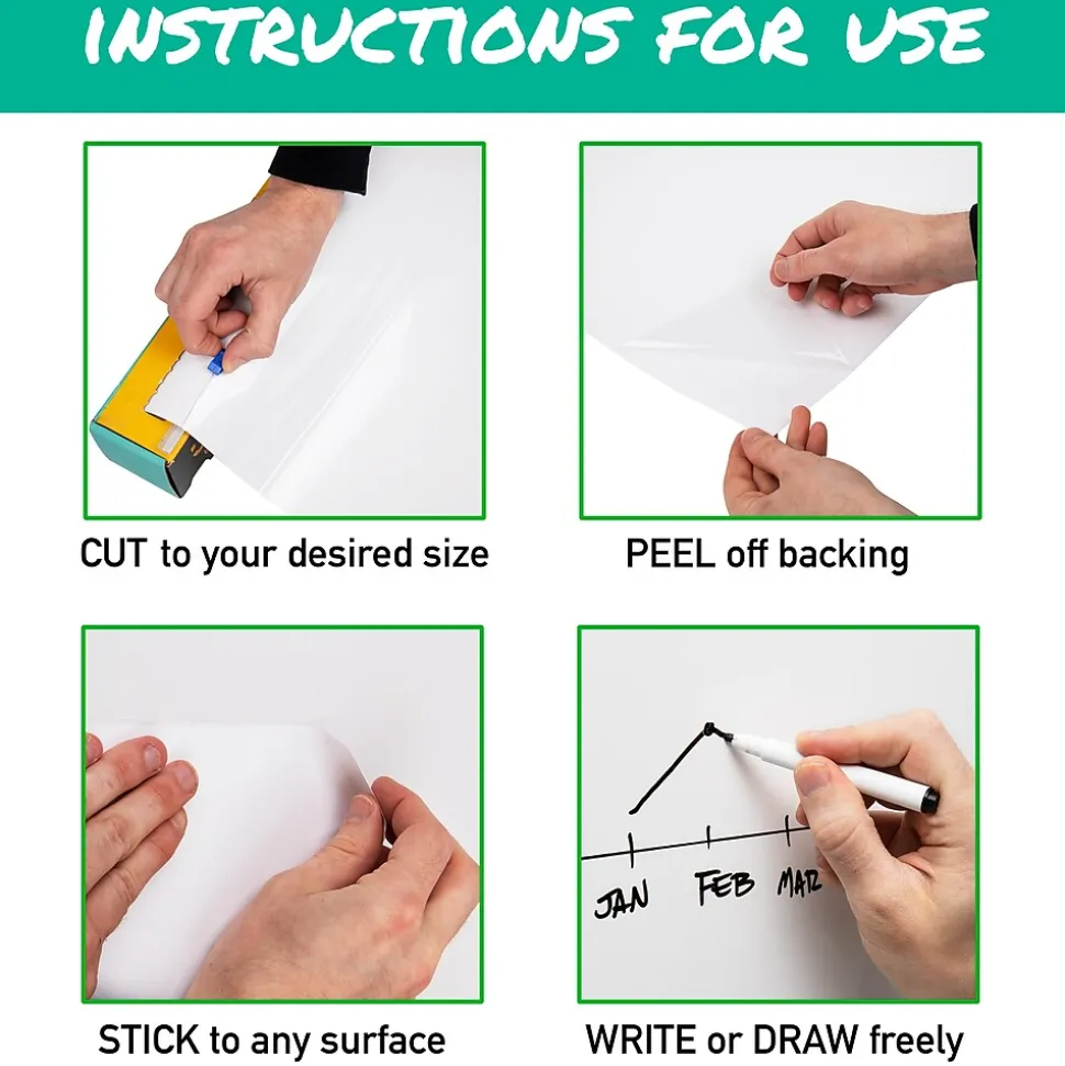 - Revitalize your old boards: Give new life to worn-out whiteboards by applying this adhesive whiteboard decal over them. Instantly transform them into functional and attractive writing surfaces