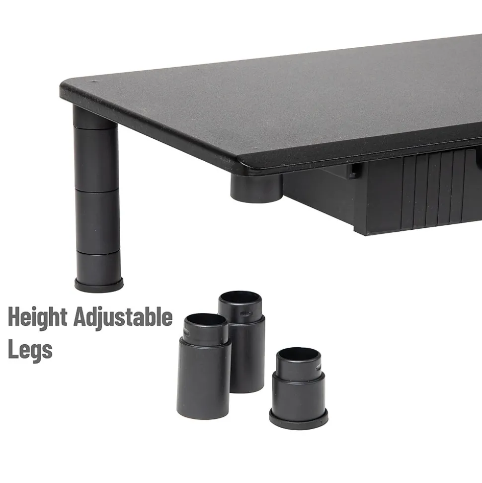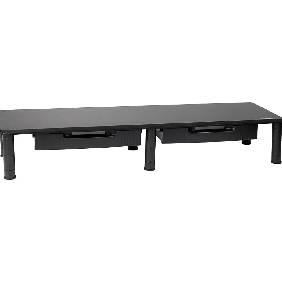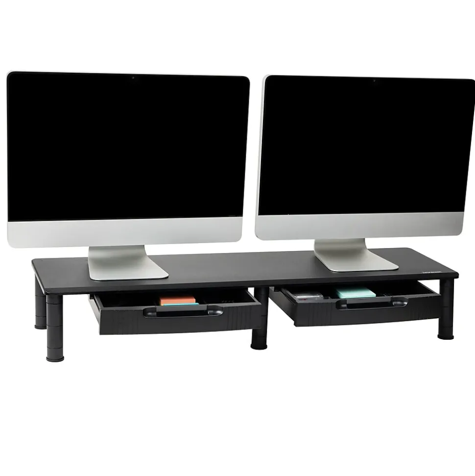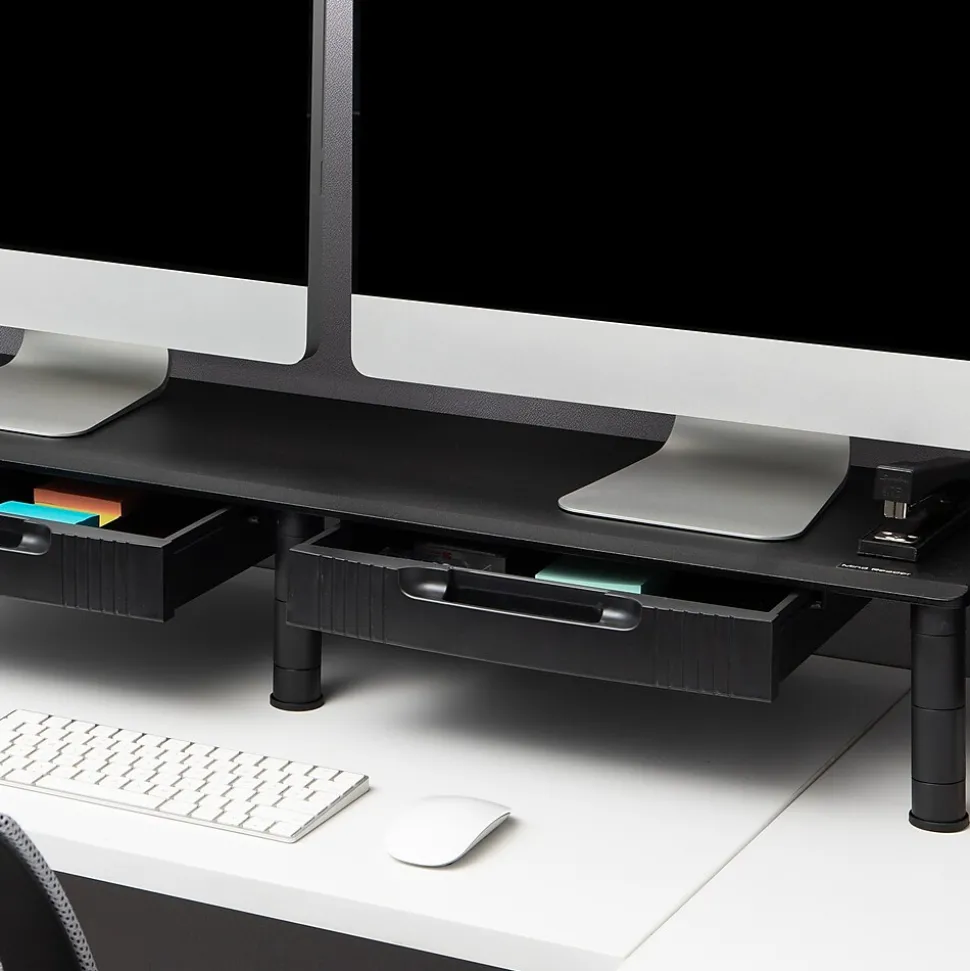 Enhance productivity and ergonomics with our dual monitor stand, a perfect solution for multi-screen users seeking an organized workspace. Utilize one side for electronics like laptops or printers, freeing up valuable desk space. Tailor the stand to your needs with four adjustable height settings for optimal comfort.Beneath the stand, stash office essentials like pens and notepads, maintaining a tidy workspace. Anti-slip rubber grips secure the stand and safeguard your desk from scratches. Holding up to 40 lbs. (18.1 kg), it’s durable and easy to clean with mild soap and water. Lightweight and portable, it’s suitable for home or office use, doubling as a shelf for TVs or home theater systems.Part of the Anchor Collection, our dual monitor stand combines style and functionality, making it an ideal gift for various occasions. Whether for a new office setup or a home office transformation, this stand promises to enhance any workspace.