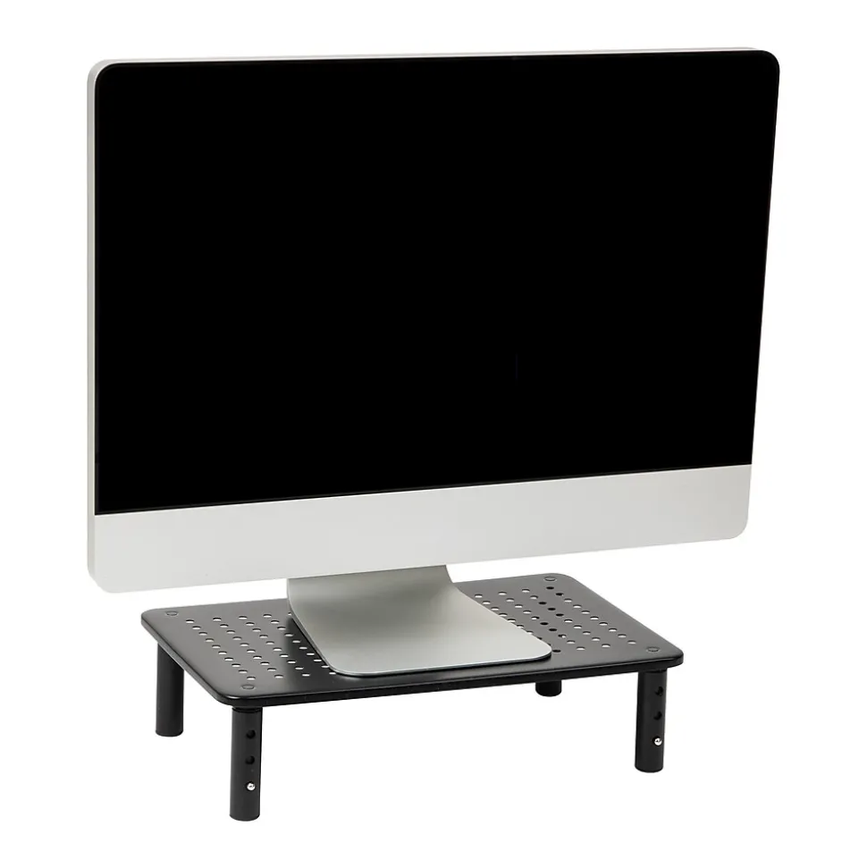 Transform your workspace with this set of two space-saving monitor stands. Whether you need a base for your computer monitor, flat-screen TV, or laptop, this stand is the perfect solution. Crafted from sturdy metal, it is lightweight and easily portable. With a weight capacity of up to 44lb (20 kg), it can comfortably support your devices.The stand features a ventilated design that allows air to circulate underneath your electronics, preventing overheating and enhancing performance. For added security, non-slip feet ensure the stand stays firmly in place. The added height allows you to adjust the viewing angle of your screen, minimizing strain on your neck and back. Work or game for longer periods without the discomfort that comes from poor posture.But that’s not all. This stand doubles up as a storage solution, providing ample room underneath to store office supplies, folders, and papers. By elevating your monitor, it helps declutter your workspace, creating a more organized and productive environment.This monitor stand makes an ideal gift for students moving into dorm rooms, new homeowners, or anyone looking to upgrade their workspace.