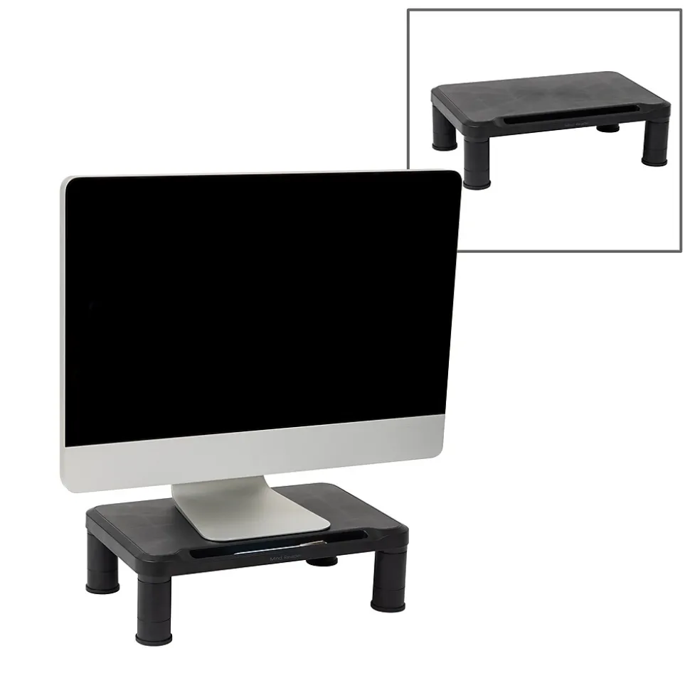 Discover the convenience and improved posture offered by this set of two adjustable monitor stands, perfect for organizing your workspace and supporting your body while you view or work. Use one for your computer monitor and the other for your laptop, TV, or printer, or keep one at home and bring the other to the office.These versatile monitor risers can also elevate your television, phone, or gaming console, adjusting in height from 2 to 5.25 inches to provide optimal support and alleviate eye, neck, and back strain. When not in use, the slim stands are easy to store in small spaces or cabinets, and can be cleaned with a cloth and mild soap/water.Featuring non-slip rubber feet for stability, these sturdy stands keep your devices safe and secure. Consider gifting one of the monitor stands to a friend experiencing eye, neck, or back strain due to poor posture while working. Ideal for dorm rooms and work-from-home setups, these slim stands not only increase available surface space but also promote better posture and overall well-being.