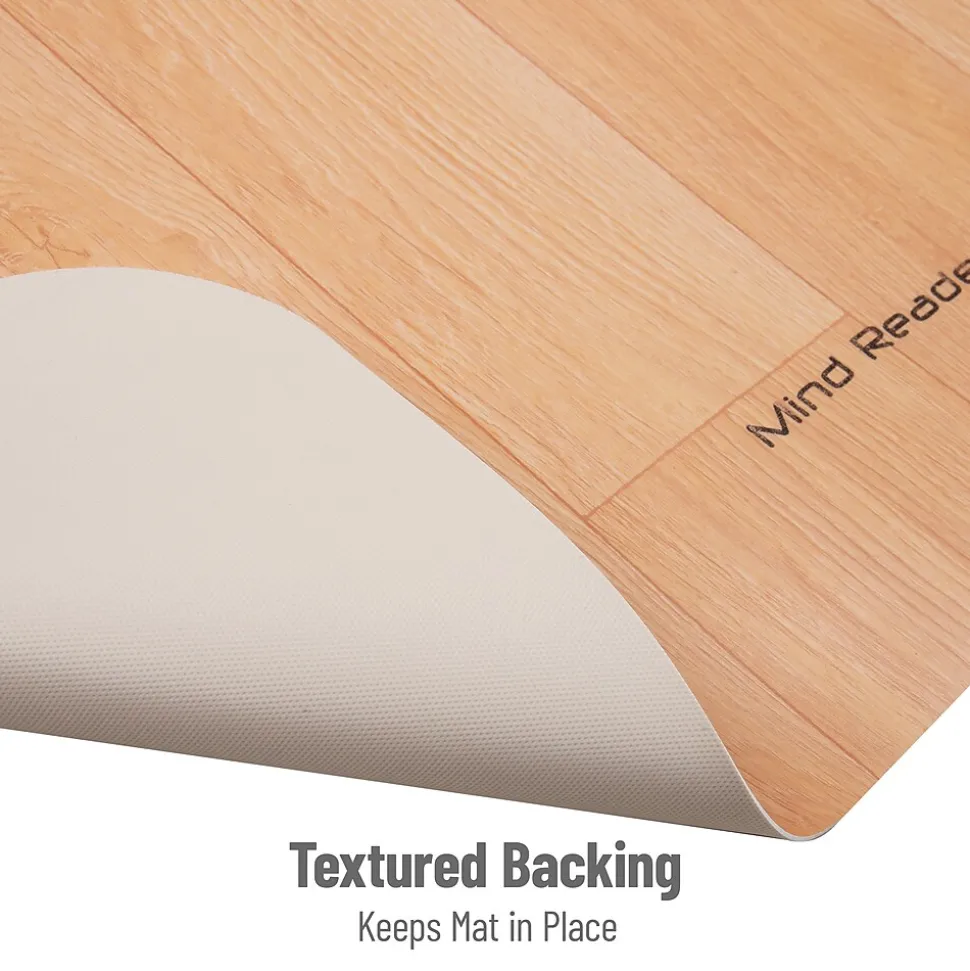 Introduce the perfect combination of style, convenience, and floor protection to your office or home office with this PVC office chair mat. Crafted to make gliding your chair easy and effortless, this mat safeguards your hardwood, tile, laminate, or vinyl flooring from scratches and wear, all while providing the comfort you need while working.Constructed from pliable PVC, this mat offers rugged durability that resists tearing and breaking, sparing you the inconvenience of constantly replacing cracked or worn-out mats. The wood grain design adds a touch of simple yet stylish aesthetic to your workspace.This mat measures a comfortable 47.5 inches long by 35.5 inches wide, making it unobtrusive yet adequately sized for most office spaces. No assembly is required upon delivery, though its flexible nature might require some time to lie flat after unrolling. Expedite the process by rolling it the opposite way a few times or using a blow dryer to soften the plastic. Alternatively, soaking the mat in warm water can help it relax and flatten. Ensure the mat is fully dry before placing it on the floor.