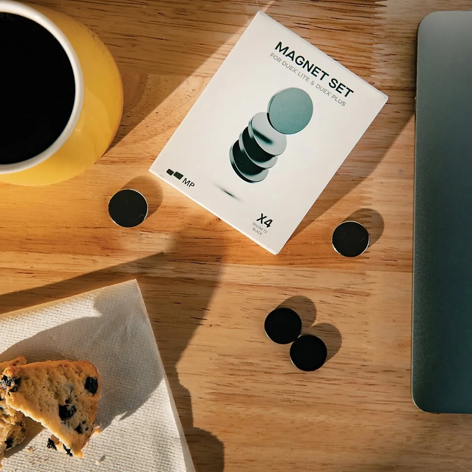 Keep your Mobile Pixels Duex and Trio monitors attached to your laptop with these Black Magnets. They’re sturdy, but safe to use with your electronics. The magnets are 20 mm x 20 mm x 2 mm so they’re small enough to travel with you.