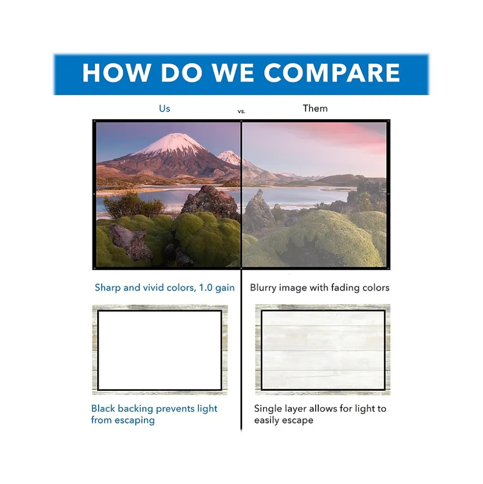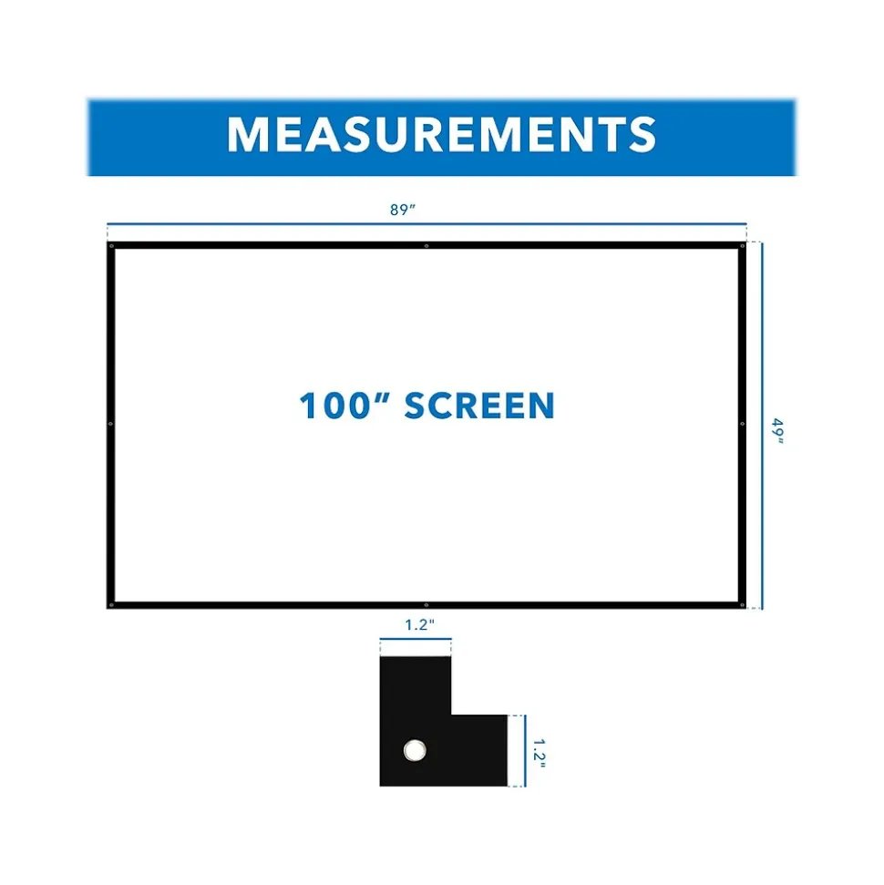 Mount-It! MI-640 is perfect for movie nights, a classroom setting, or even the office. The 100″ projection screen is simple and practical. It’s the great choice for anyone looking for a high-quality fixed projection screen that’s easy to mount and even easier on the wallet. This lightweight product allows for quick and easy setup, as well as for transport. The screen offers a 160-degree viewing angle with a 1 gain experience. Hardware and instructions are included.