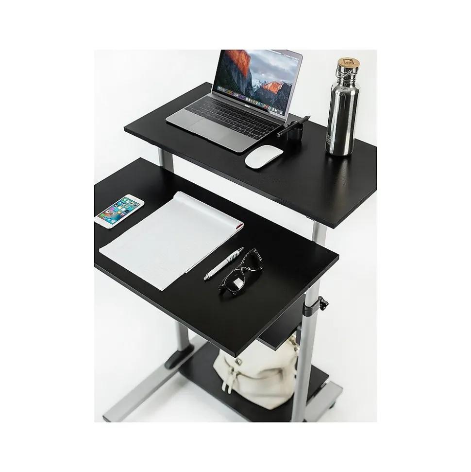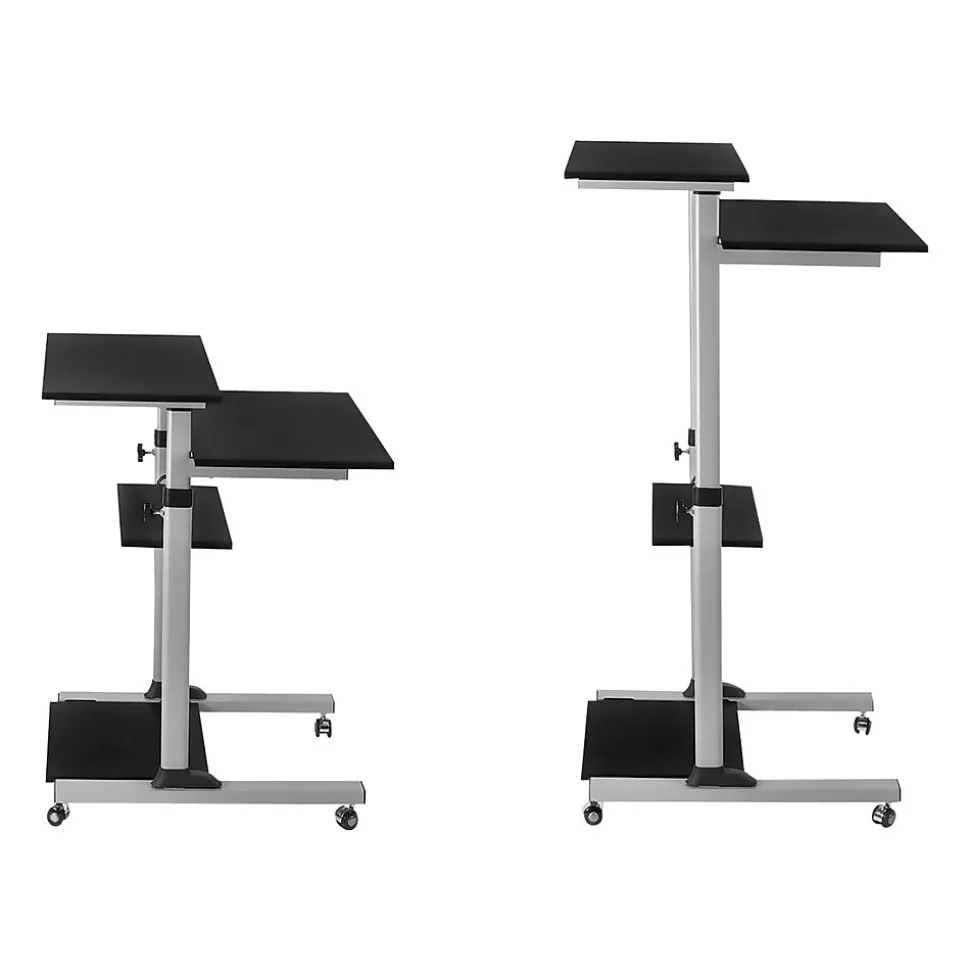 Create an ergonomic work area with this rolling stand-up desk. Tighten the two adjustment knobs by hand to move it from 37 to 54 inches when you’re ready to change position. The four platforms provide ample space for the basics and accommodate projectors for presentations, and each one holds 33 pounds for easy use with heavier equipment. Four caster wheels make this Mount it rolling desk simple to move.