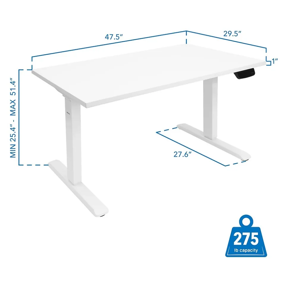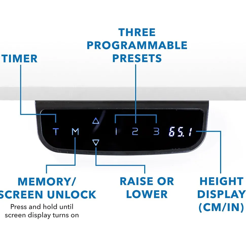 Benefit from reduced stress to your neck, shoulders, and wrists by using the Mount-It! dual-motor electric standing desk to transform your traditional desk into an ergonomic workstation. You’ll feel the difference right away. The advanced touch-screen control panel has three customizable height presets, so you can save your favorite seated and standing heights. The dual electric motors provide high load-bearing capacity and smooth height adjustment. Plus, they’re thermal- and overload-protected for increased safety and longevity while you work. An integrated sensing technology detects both hard and soft objects in the movement path to avoid any unwanted damage. Select your favorite tabletop, and install it on this desk to complete your setup. The tabletop is easily cleanable with a damp cloth.
