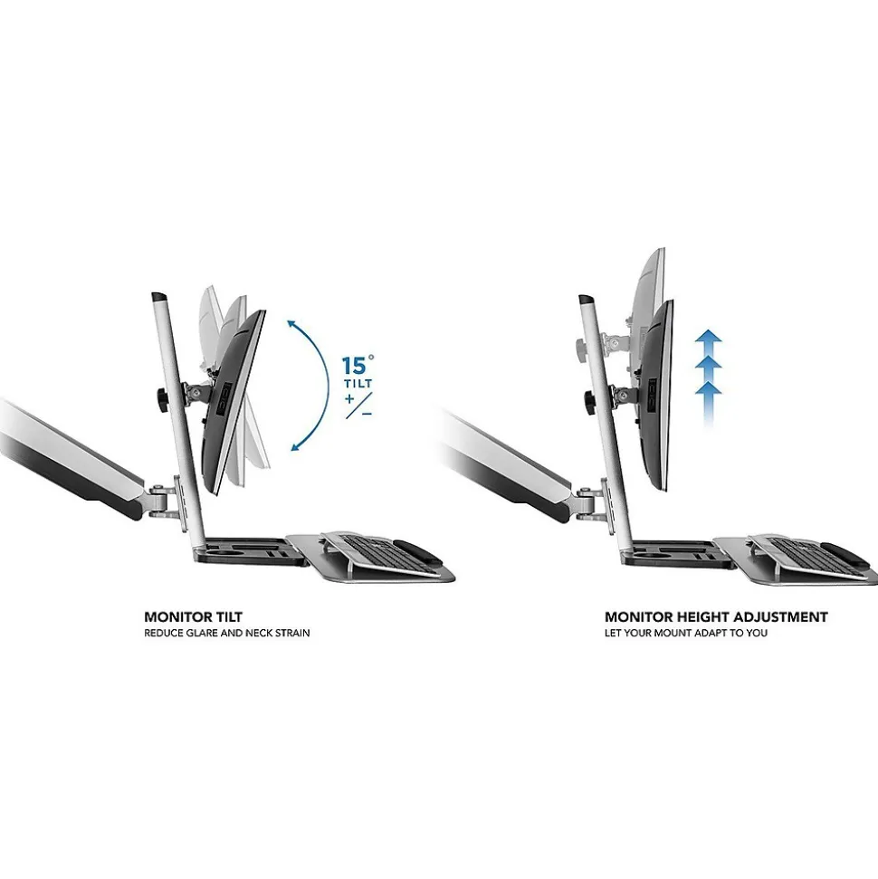 - This wall mounted standing computer workstation is full motion and is easily height adjustable up to 19.9″ for a healthy posture will sitting or standing.
