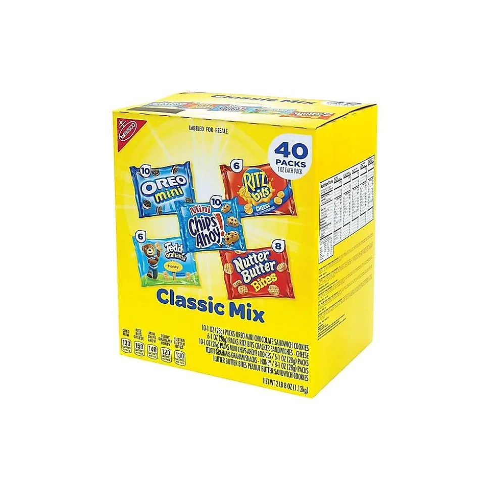 Grab a Nabisco cookie variety pack and enjoy five delicious flavors. Each box of Nabisco cookie variety packs contains 40 individual serving pouches, making them great for snacking, classroom or office lunches, and stocking vending machines.