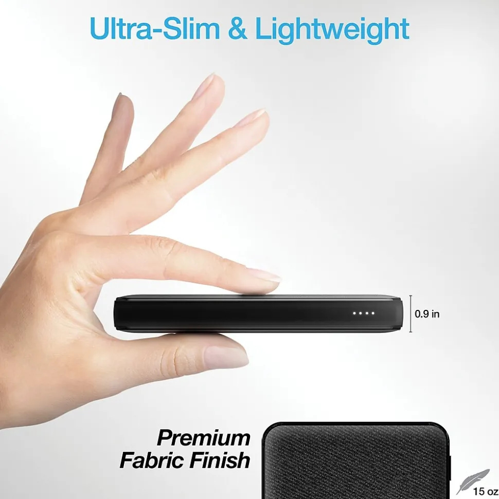Spend less time plugged in! Engineered with Power Delivery (PD) and Qualcomm Quick Charge 3.0 technology, this Naztech 20,000 mAh 18 Watt PD+QC Fast Charge High-Capacity Fabric Power Bank is the ultimate backup power source for all your mobile devices. Fast charge compatible devices like the latest iPhone and Samsung smartphones from 0 to 50% in just 30 minutes! This power bank is ideal for whenever you’re away from an outlet or off the grid.