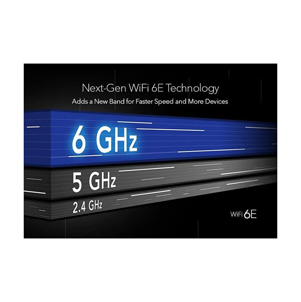 - Wi-Fi 6E (802.11ax) tri-band Wi-Fi (AX7800): 2.4GHz AX: 2×2 (Tx/Rx) 1024/256-QAM 20/40MHz, 5GHz AX: 4×4 (Tx/Rx) 1024/256-QAM 20/40/80/160MHz; 6GHz AX: 2×2 (Tx/Rx) 1024/256-QAM 20/40/80/160MHz