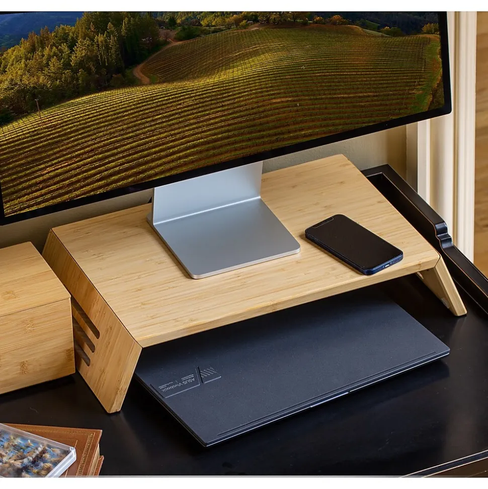 - Bamboo monitor stand combines stylish, natural looking and functionality can enhance the overall look of your workspace