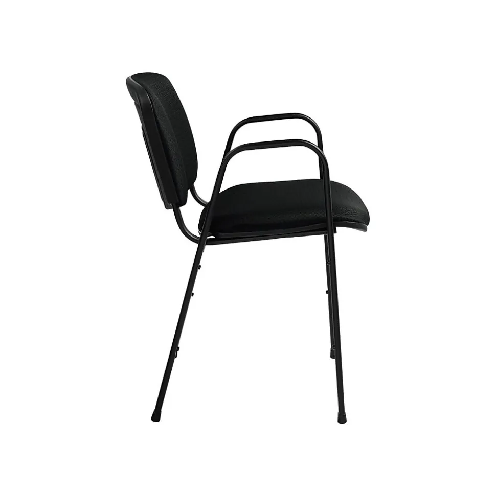 Keep these portable chairs handy for meetings, presentations, business lunches and impromptu gatherings. Stackable construction makes it easy to store the chairs in small spaces. The patterned black fabric cushioning and dual armrests offer comfort during long presentations or work sessions. Designed to be ergonomic, these guest chairs provide ample lower back support for those with lumbar pain. Made with black plastic and fabric cushioning, these Offices To Go ergonomic stack chairs go well with any decor.