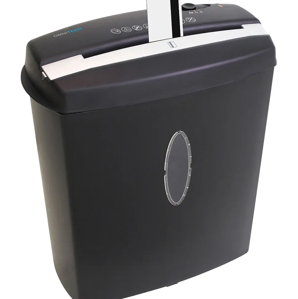 Quickly and efficiently shred paper and credit cards with the Omnitech 12-Sheet Cross-Cut Shredder.