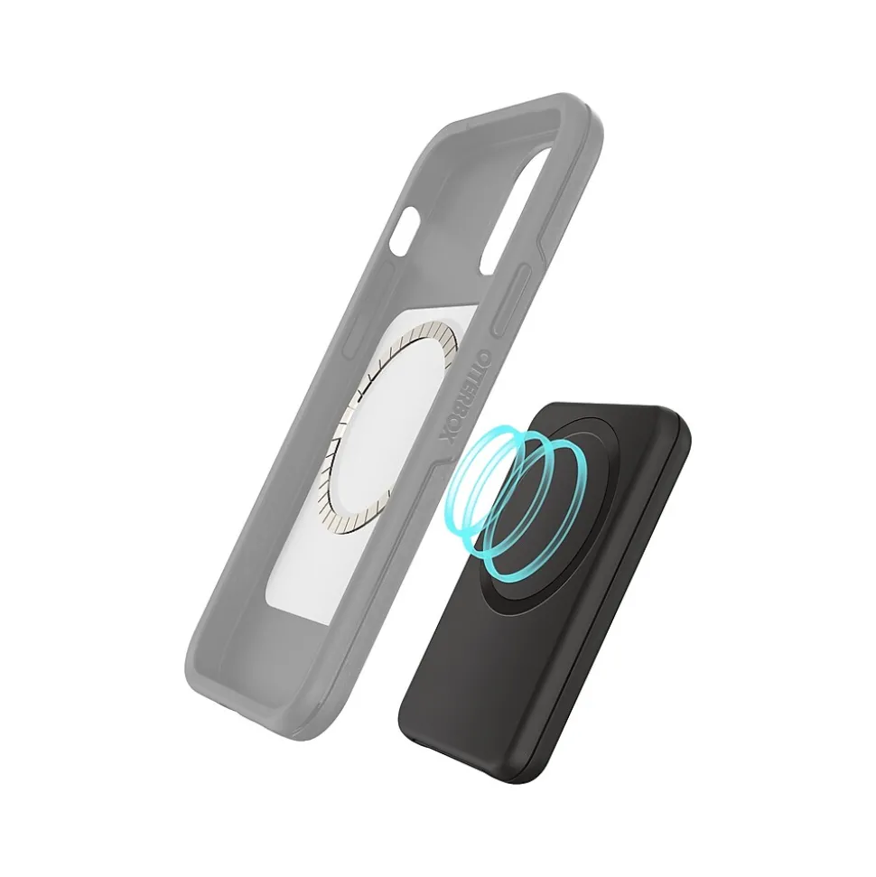 Wireless power bank for MagSafe keeps iPhone charged. Simply click onto iPhone or OtterBox case for MagSafe to get a boost of extra battery power on the spot. Or use as a standalone power bank to charge other devices. Power Bank for MagSafe delivers all the power you need to stream, work and connect.