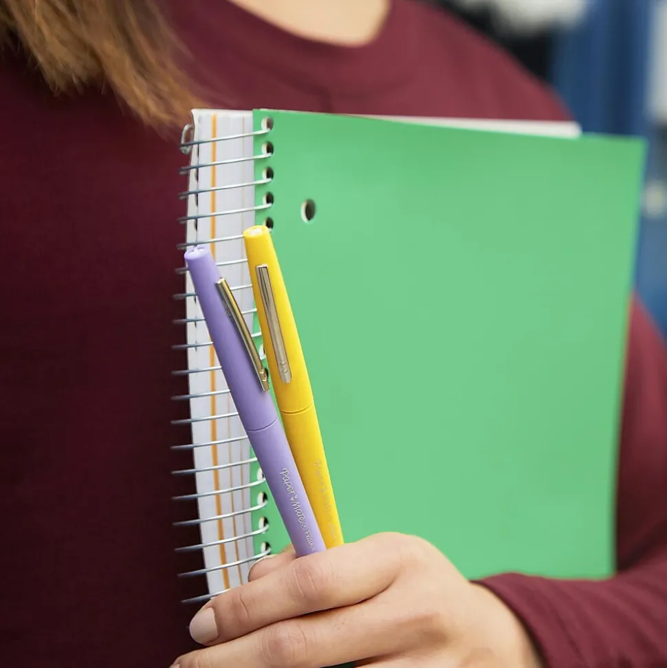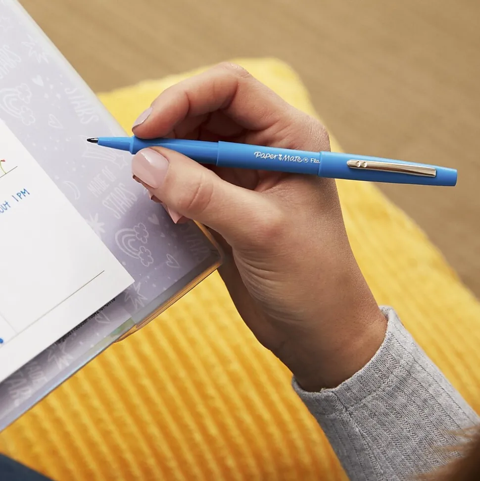Write with precision and vivid color using these Paper Mate Flair felt-tip pens. They feature Point Guard technology to prevent tip damage and a large ink supply to provide longer life. The water-based ink dries fast to help prevent smearing, while the medium point lets you make thicker lines without sacrificing accuracy. These Paper Mate Flair felt-tip pens have a contoured barrel grip to give you maximum control.