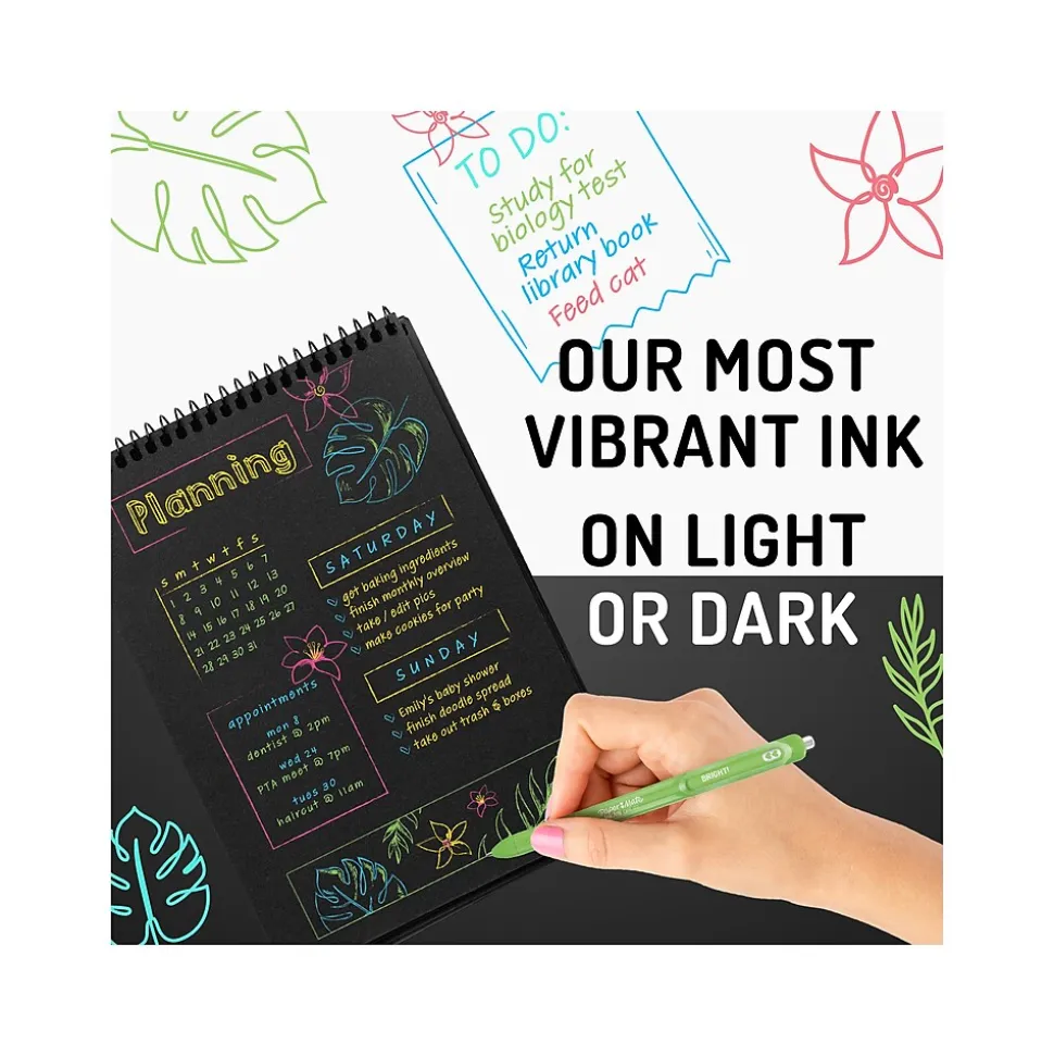 - Retractable gel pens with bright ink that pops on both light and dark paper