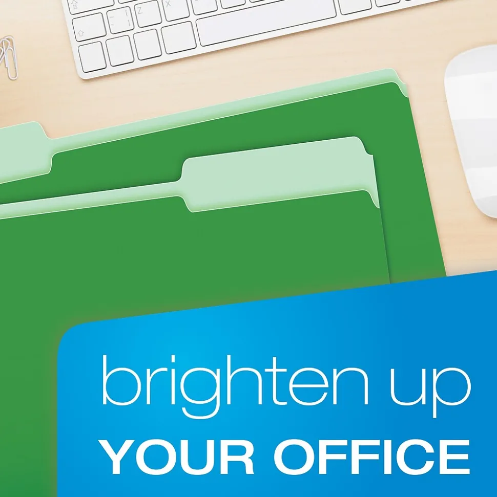Pendaflex Recycled File Folder, 1/3-Cut Tab, Legal Size, Green, 100/Box (43501/3BGR)