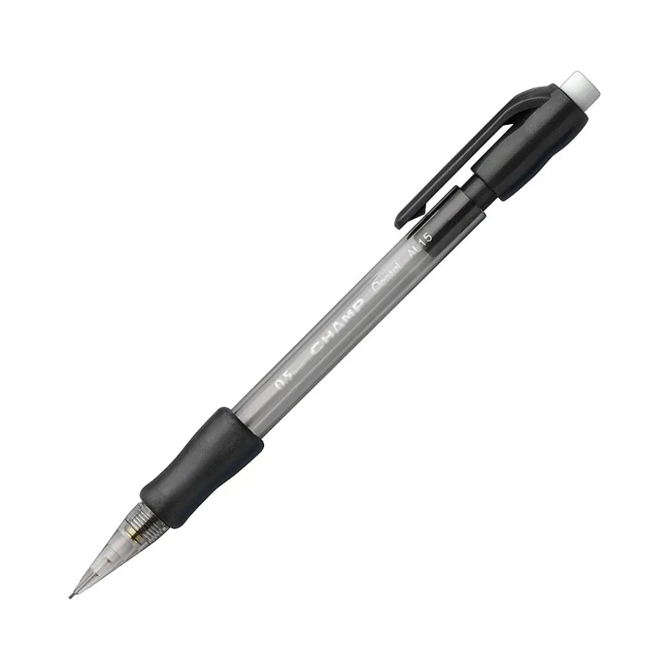 Write lengthy assignments, sketches, and other papers by using these black-barrel medium pencils. Featuring a soft latex-free Comfort Zone grip, these Pentel Champ automatic No. 2 pencils provide enhanced comfort and control while writing, and the 0.5mm lead offers precise fine strokes.
