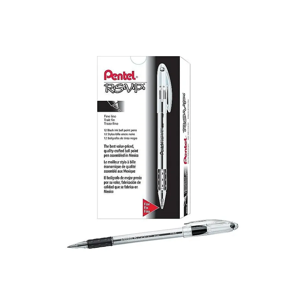 Write clear and crisp business memos and presentations with these Pentel R.S.V.P. ballpoint pens. The well-balanced sturdy pens have ergonomic barrel design with latex-free rubber ComfortZone grips for adequate writing control, and their stainless steel tips are consistent and durable. These Pentel R.S.V.P. fine point ballpoint pens have a clear plastic body to let you keep an eye on the ink level.